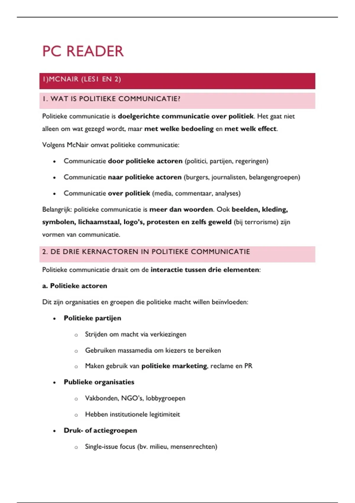 alle teksten van de reader duidelijk samengevat met de bijhorende lessen van het vak politieke communicatie
