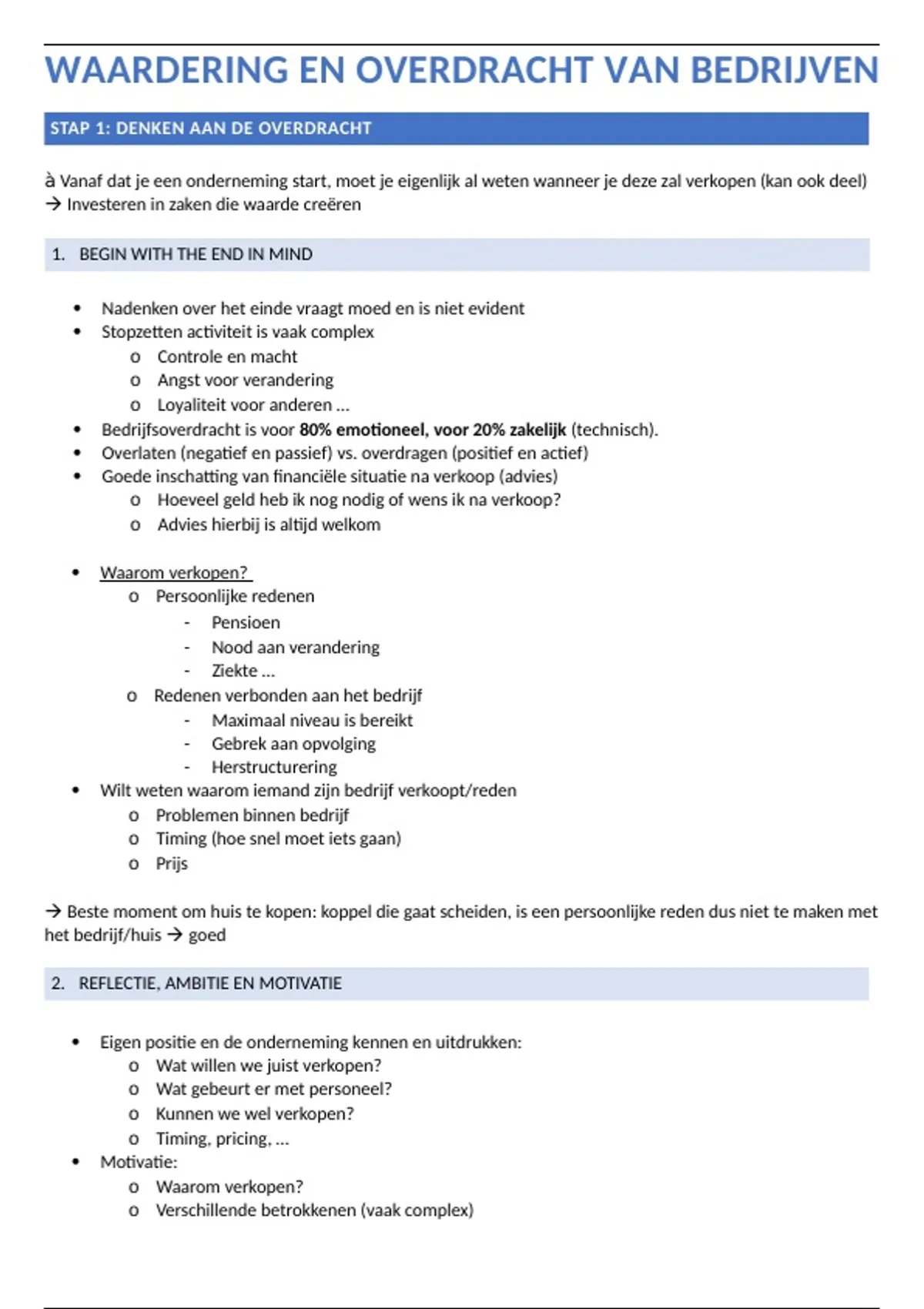 SAMENVATTING - WAARDERING EN OVERDRACHT VAN BEDRIJVEN '25-'26 3e jaar KMO-management