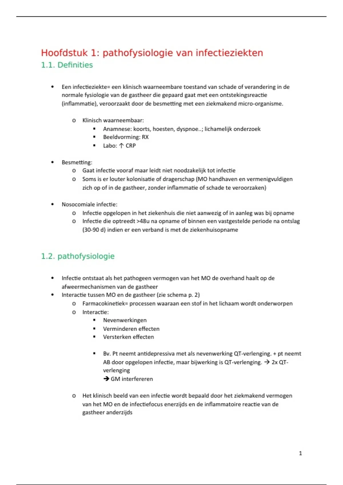 Hoofdstuk 1: pathofysiologie van infectieziekten