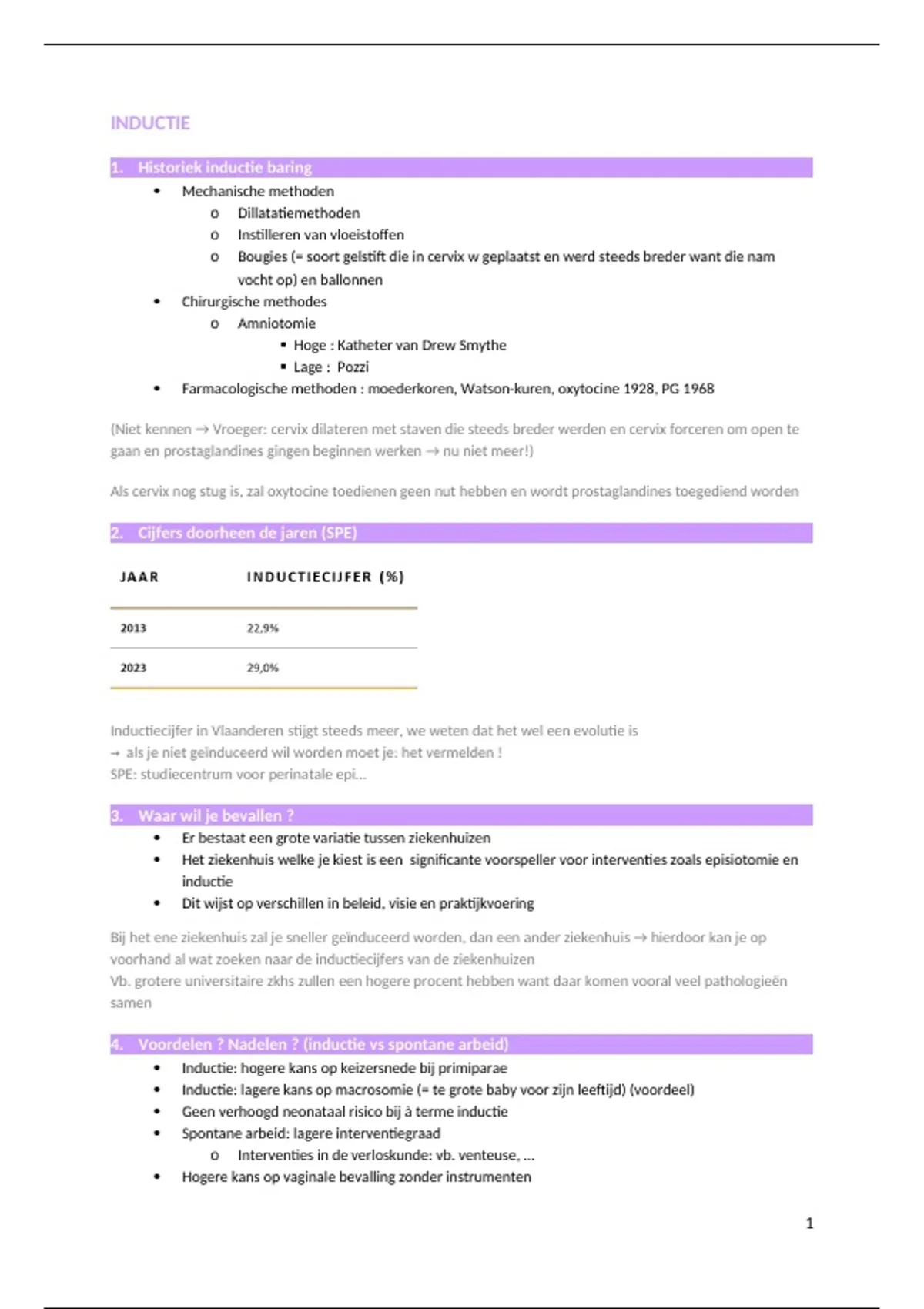 4. Voordelen ? Nadelen ? (inductie vs spontane arbeid)