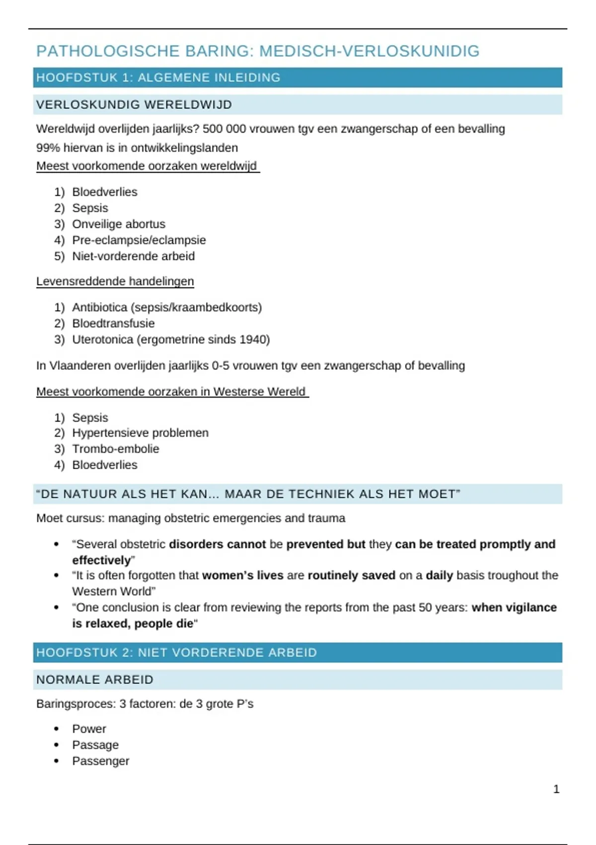 Dit is een samenvatting van het vak Pathologische zwangerschap, baring en kraambed (2VRK16). Deze samenvatting bevat alle lessen en notities van medisch-verloskundig (pathologische baring).