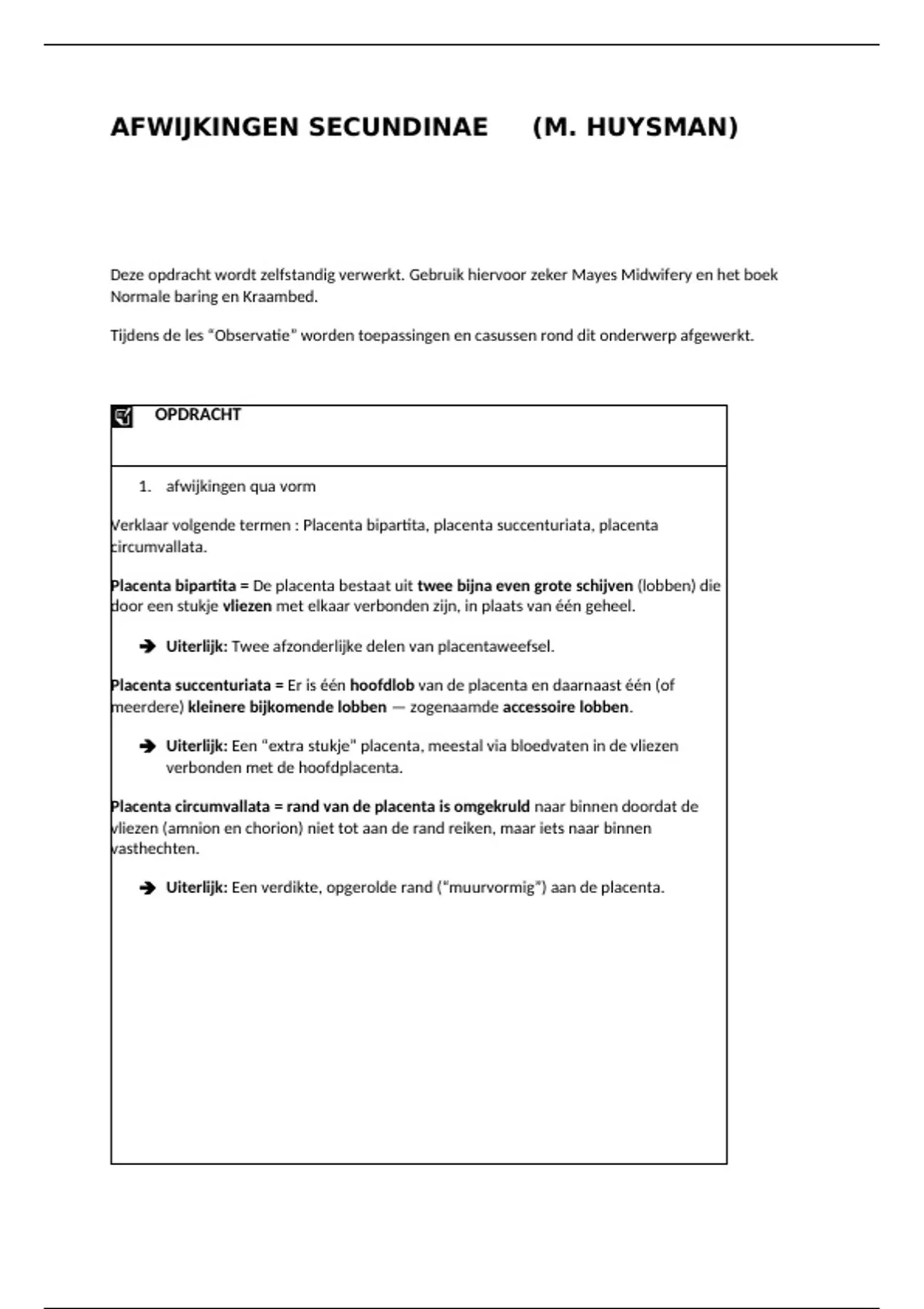Verklaar volgende termen : Placenta bipartita, placenta succenturiata, placenta