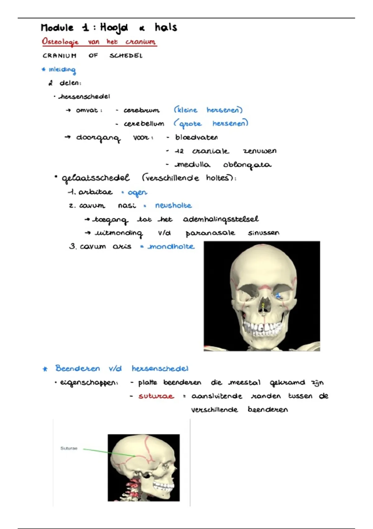 Samenvatting Module 1: osteologie cranium