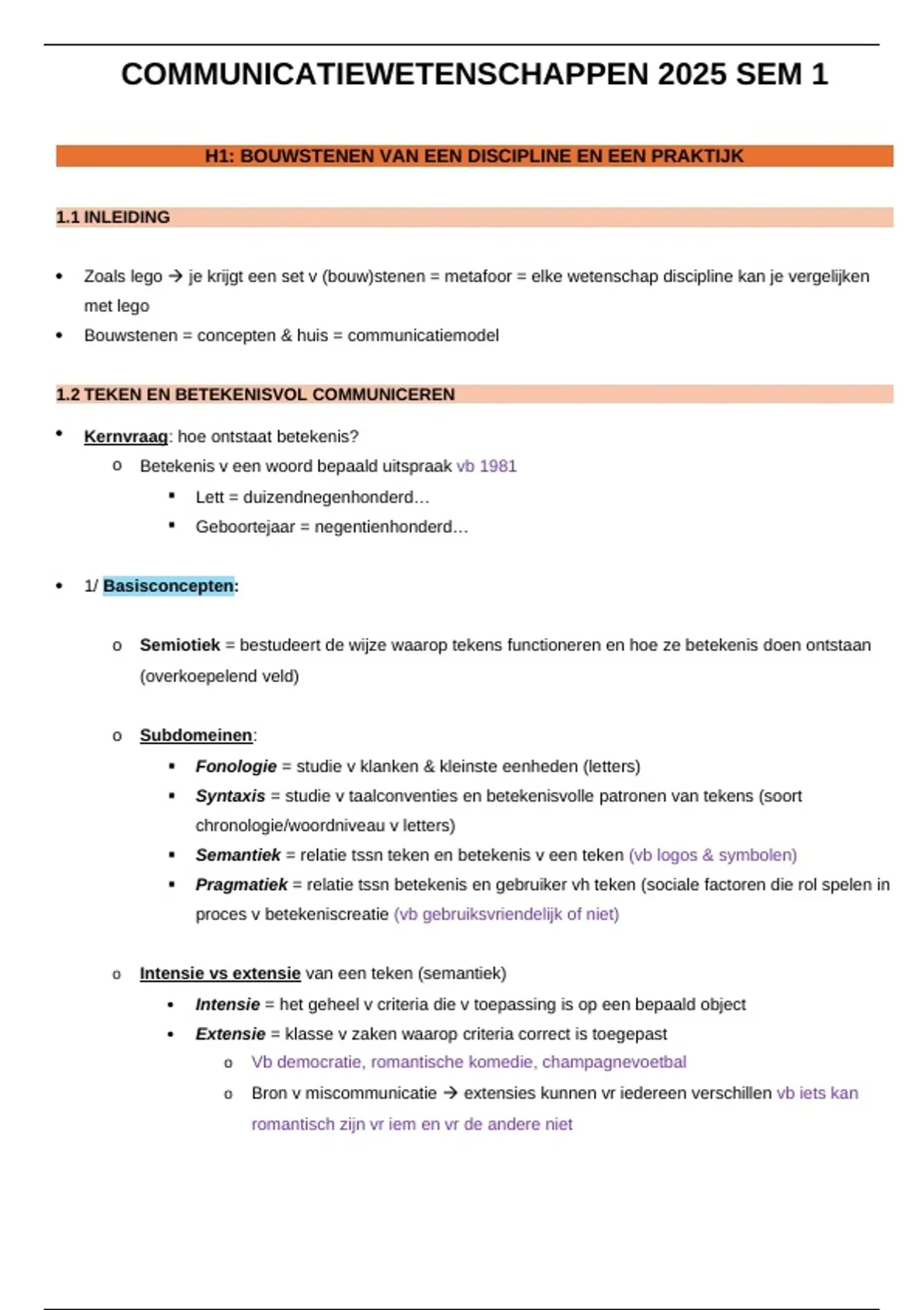 Volledige samenvatting communicatiewetenschap UGent 1ste jaar sem 1