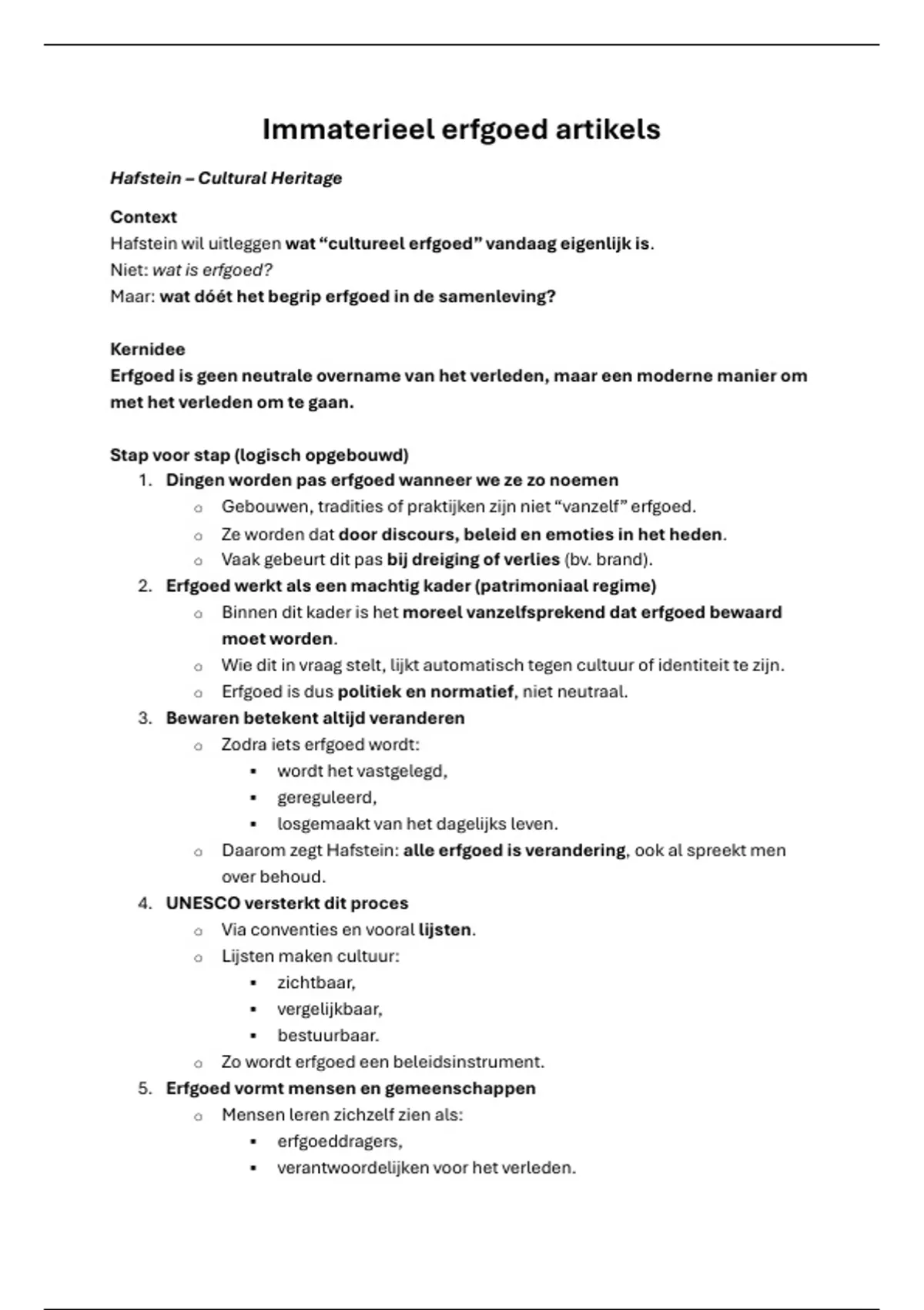 o Daarom zegt Hafstein: alle erfgoed is verandering, ook al spreekt men