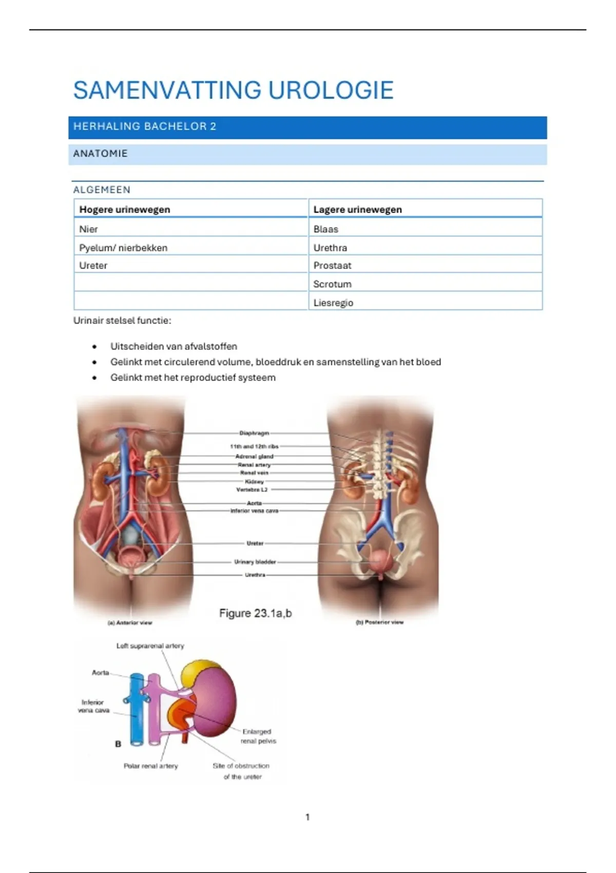 Urine = water + afvalstoffen → 1,5 -2,5L/ dag, dit is sterieel, gelig van kleur en helder.