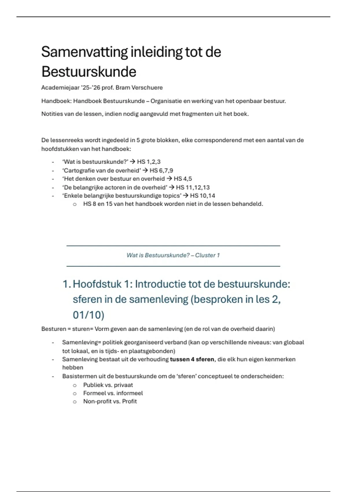 - ‘Wat is bestuurskunde?’ → HS 1,2,3