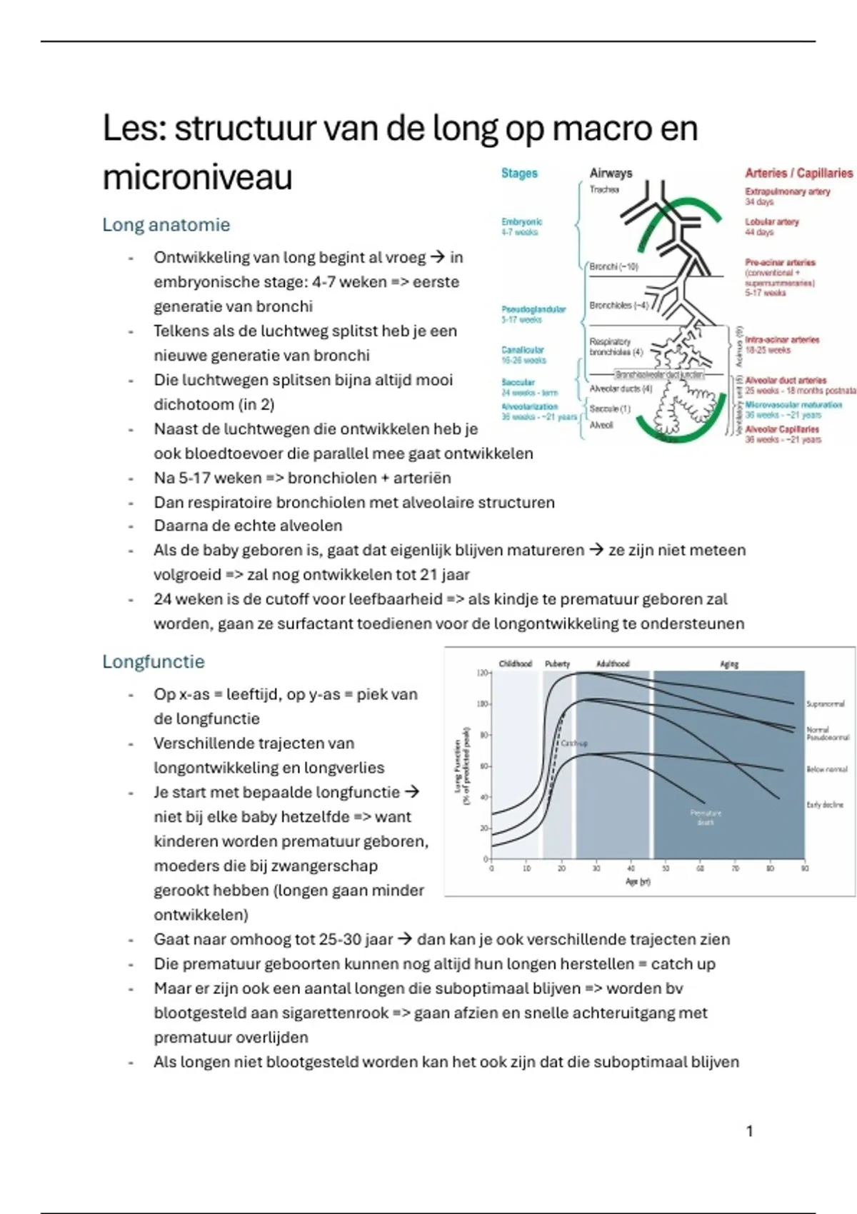 - Na 5-17 weken => bronchiolen + arteriën