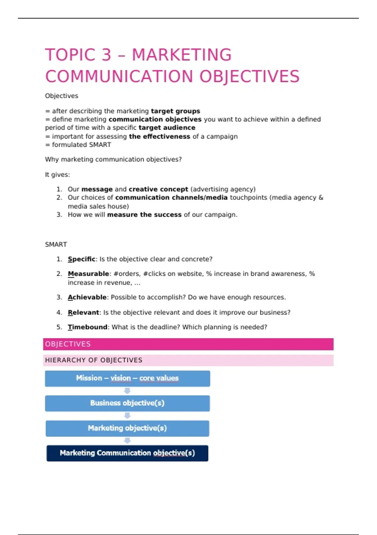 2. Measurable: #orders, #clicks on website, % increase in brand awareness, %