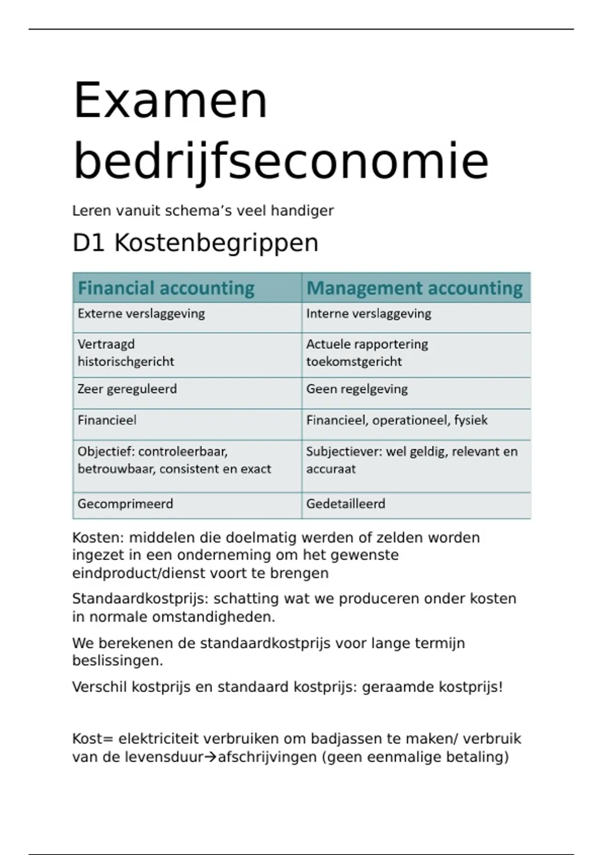 o Kostenbeheersing(=standaardkostprijs bepalen-