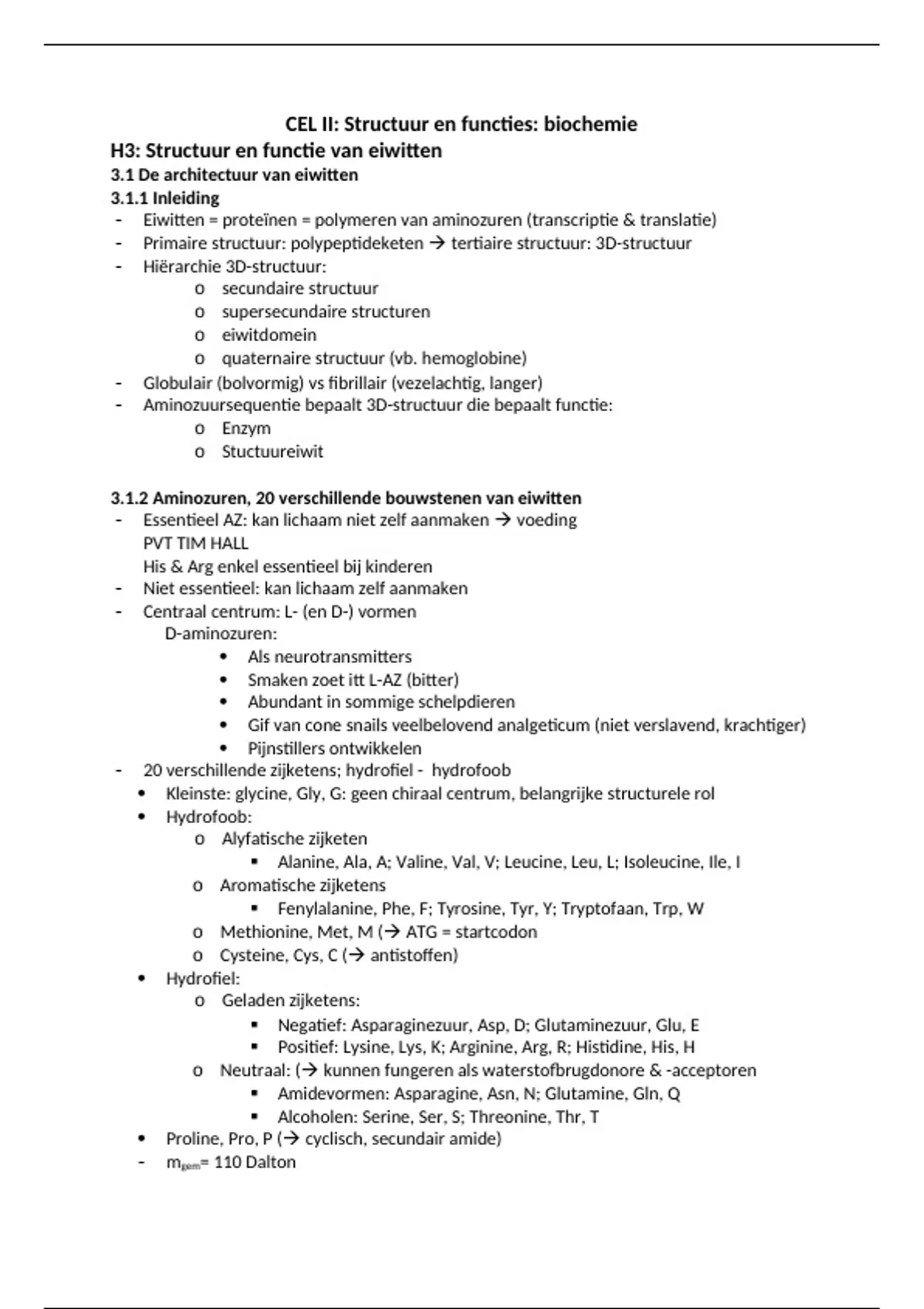 H3: Structuur en functie van eiwitten