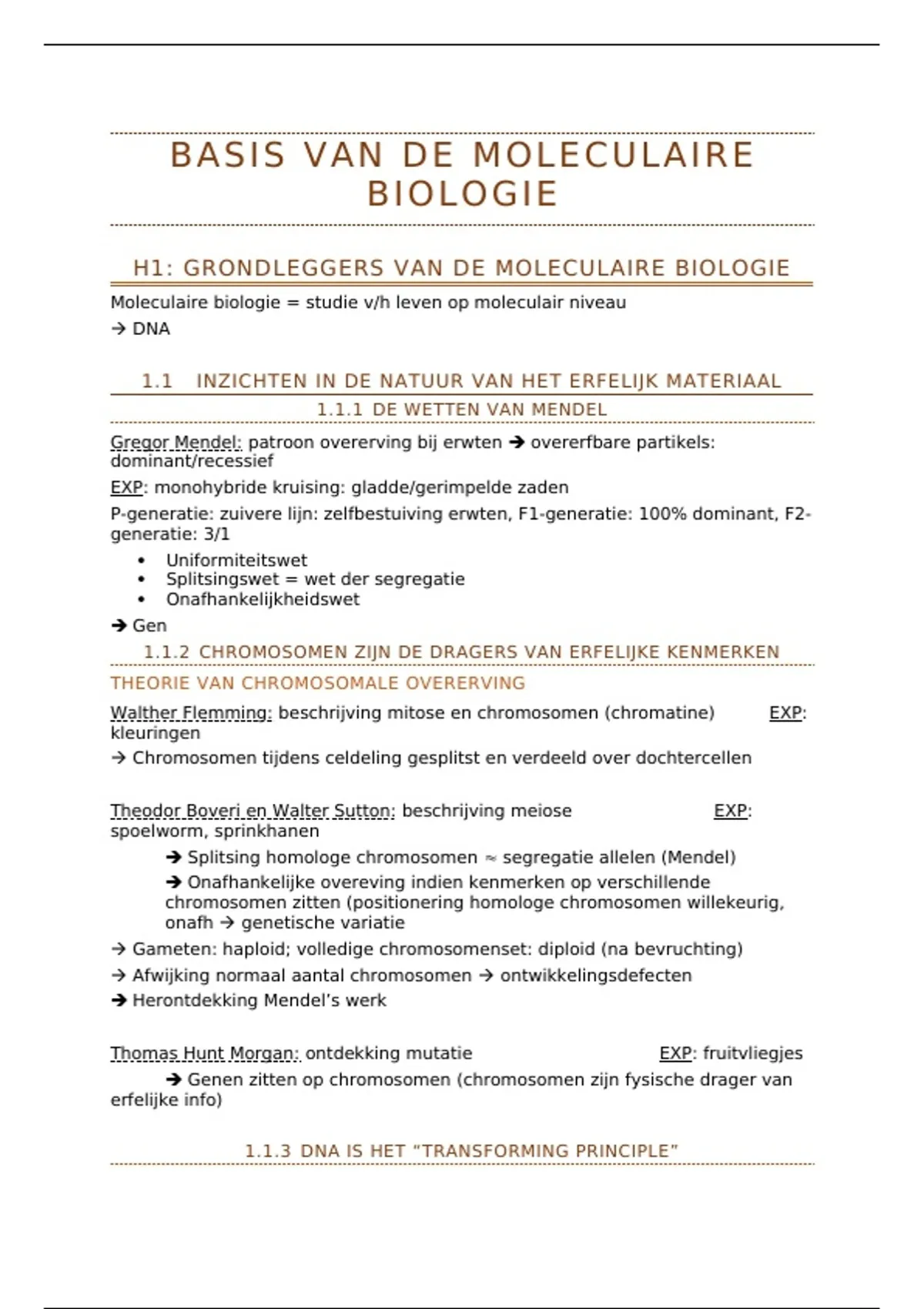 H1: GRONDLEGGERS VAN DE MOLECULAIRE BIOLOGIE