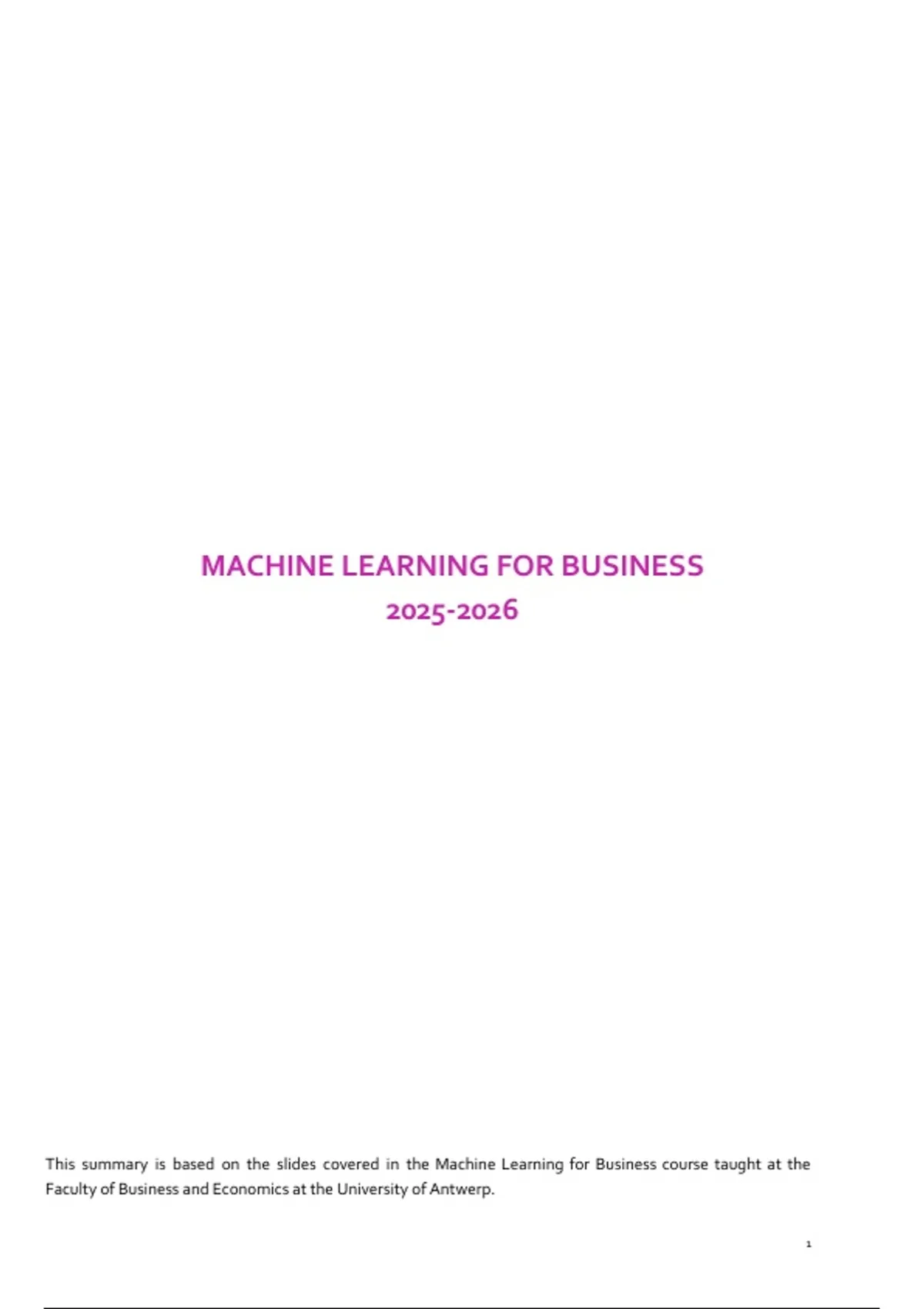 This summary is based on the slides covered in the Machine Learning for Business course taught at the
