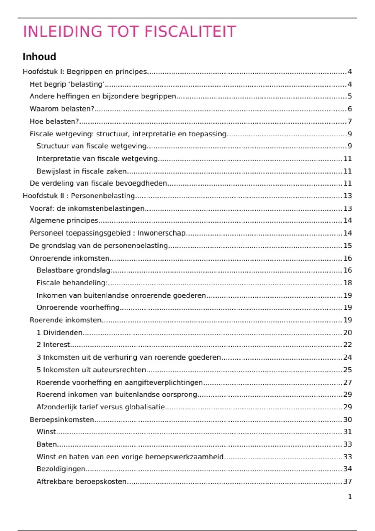 INLEIDING TOT FISCALITEIT
