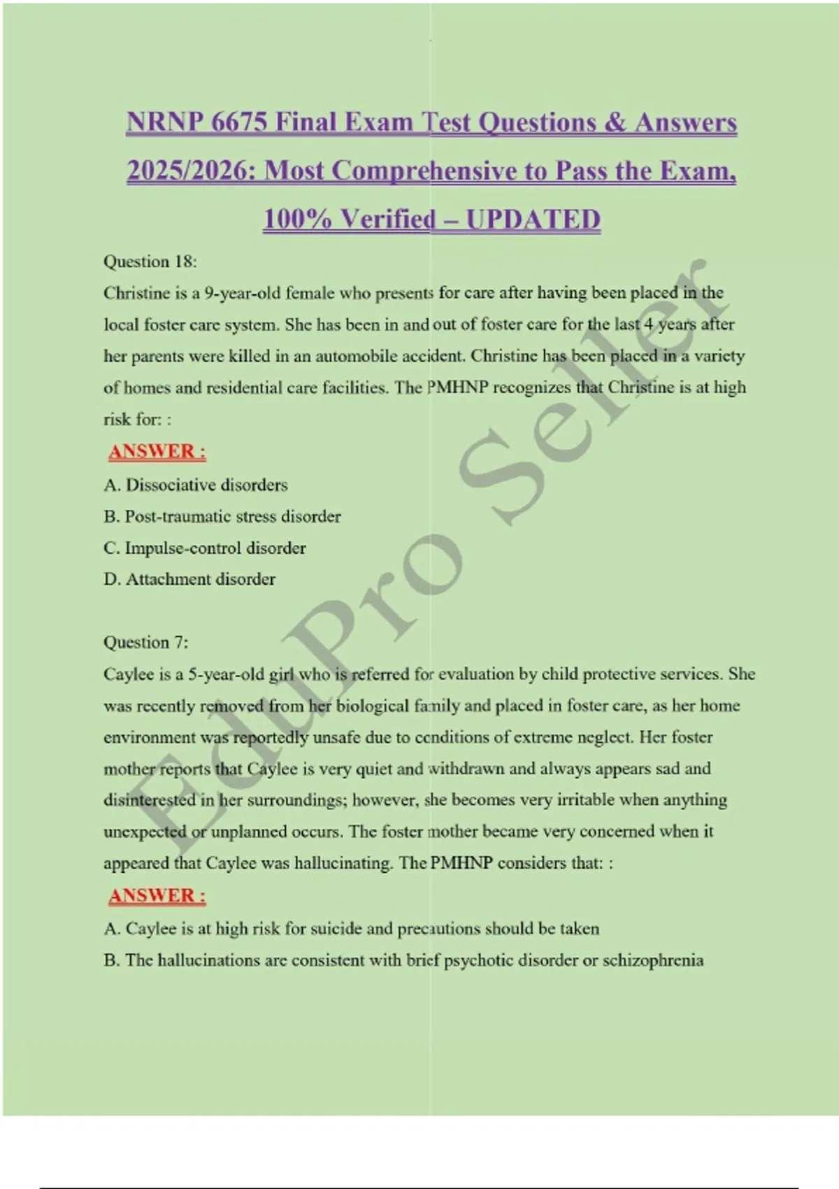 NRNP 6675 Final Exam Test Questions & Answers 2025/2026: Most Comprehensive to Pass the Exam, 100% Verified – UPDATED