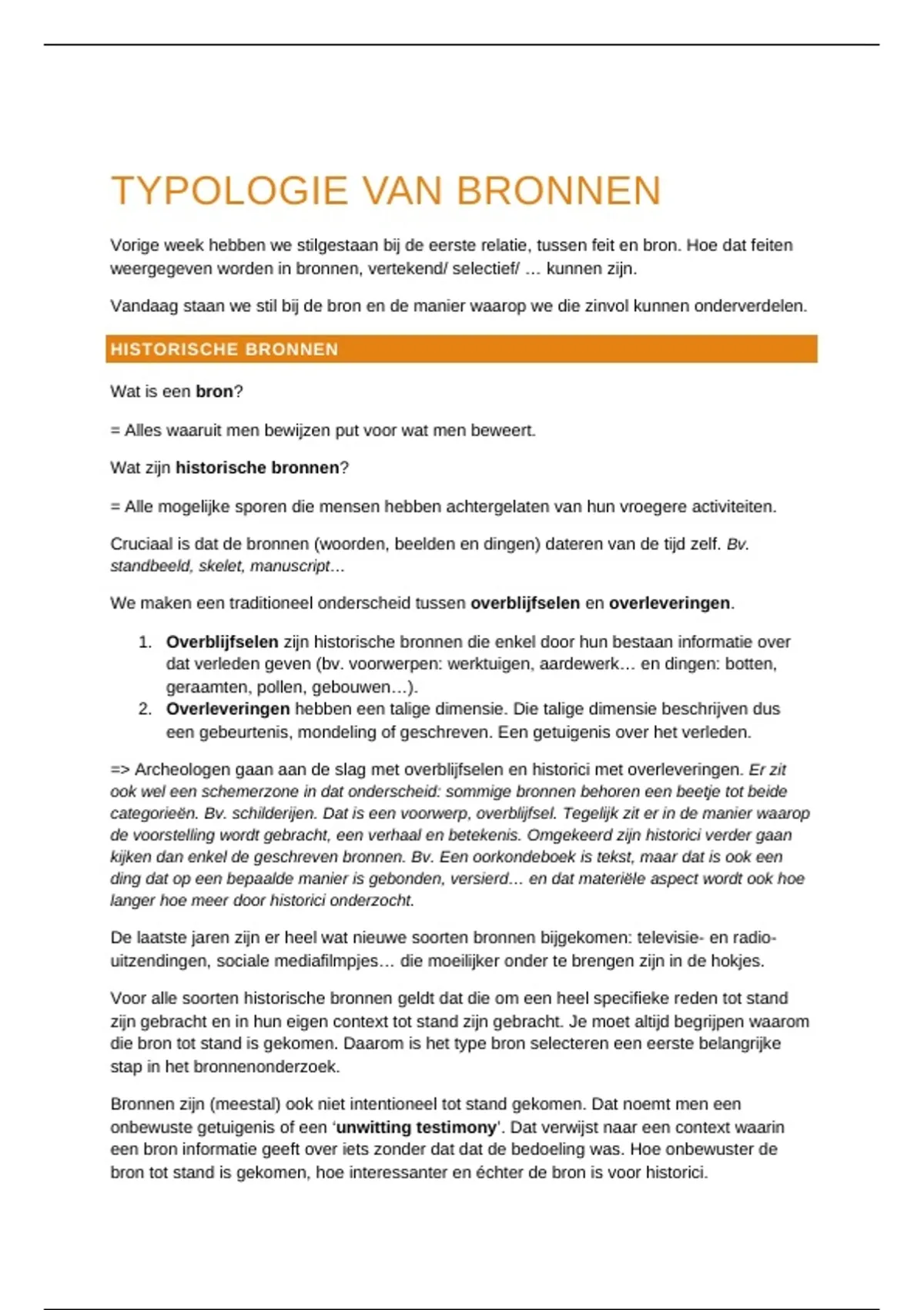 Samenvatting 'Historische Kritiek' - Typologie van bronnen