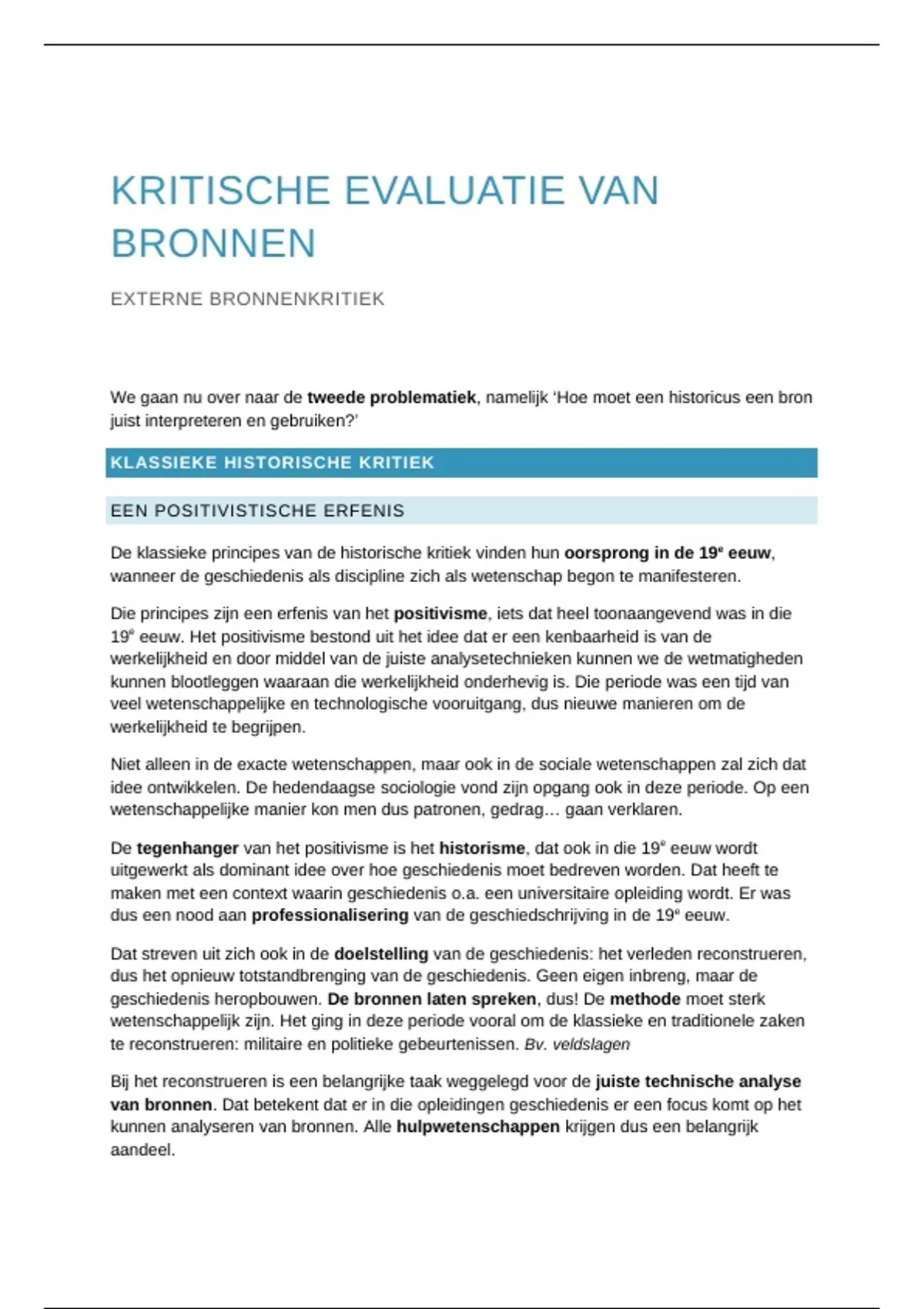 gangbaar zijn. Die zijn ingedeeld in externe kritiek enerzijds (analyse van de bron als