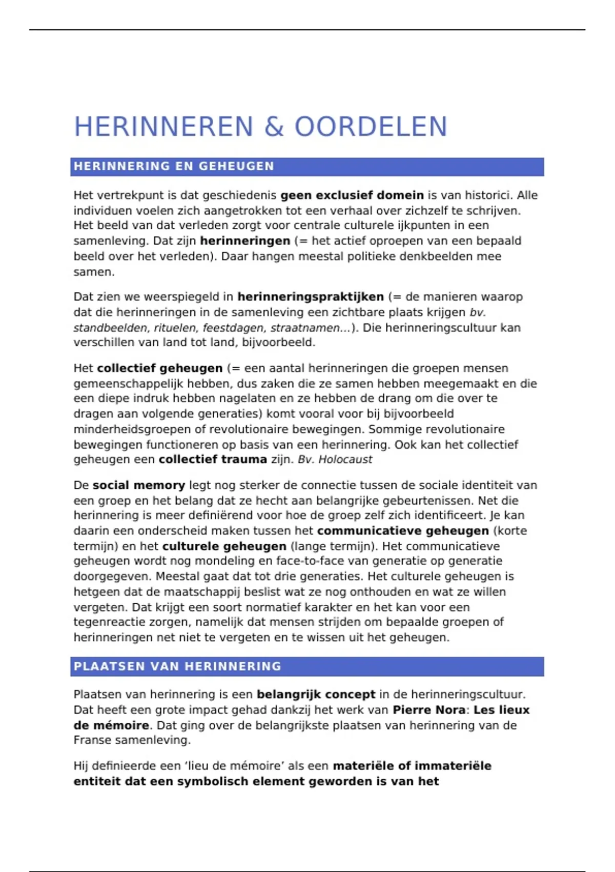 samenleving. Dat zijn herinneringen (= het actief oproepen van een bepaald