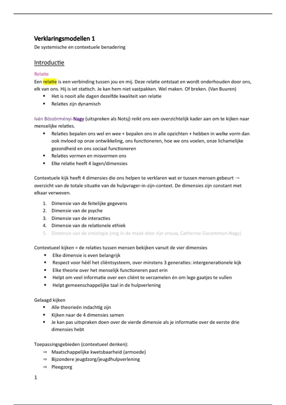 Contextueel kijken = de relaties tussen mensen bekijken vanuit de vier dimensies