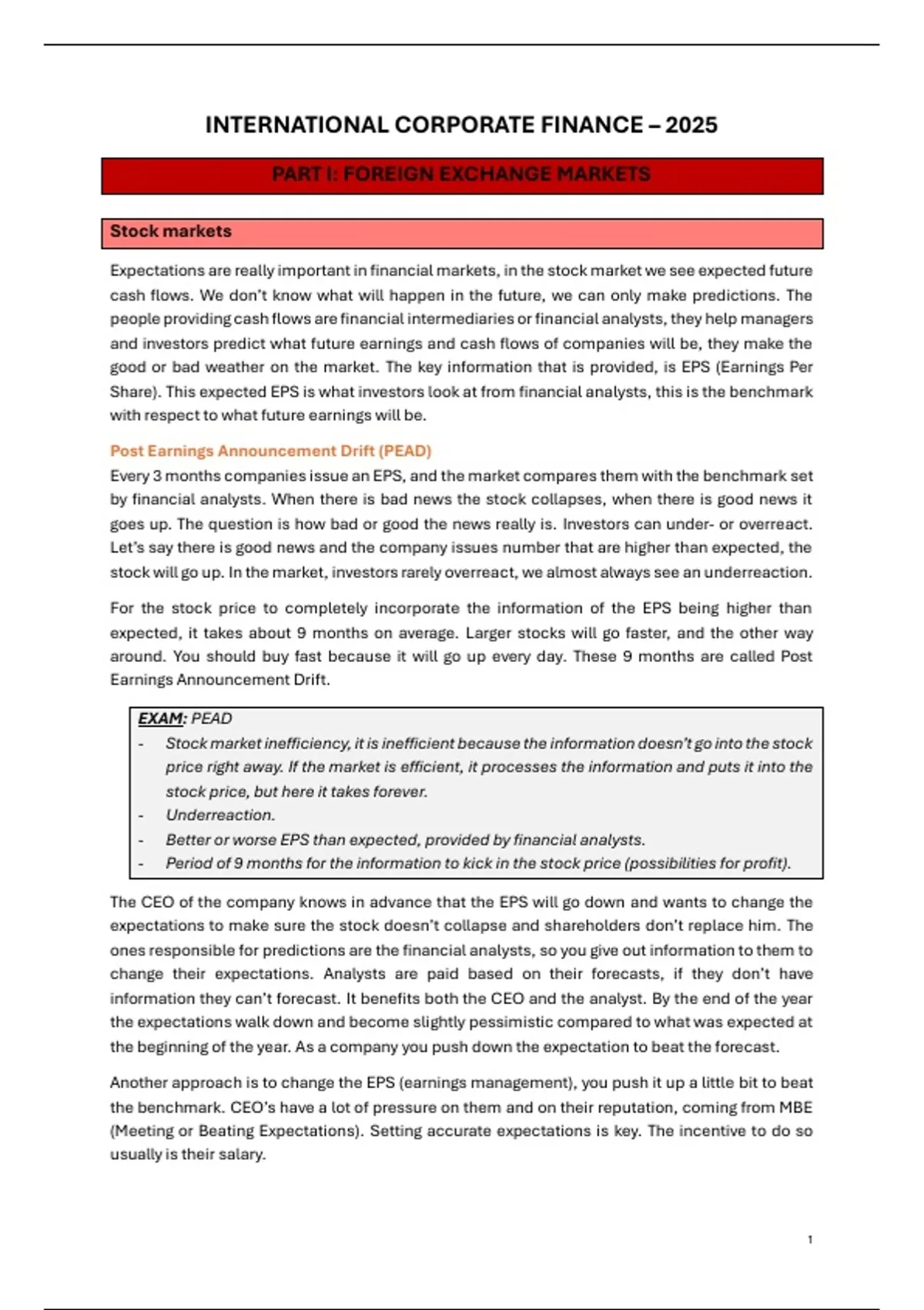 PART I: FOREIGN EXCHANGE MARKETS