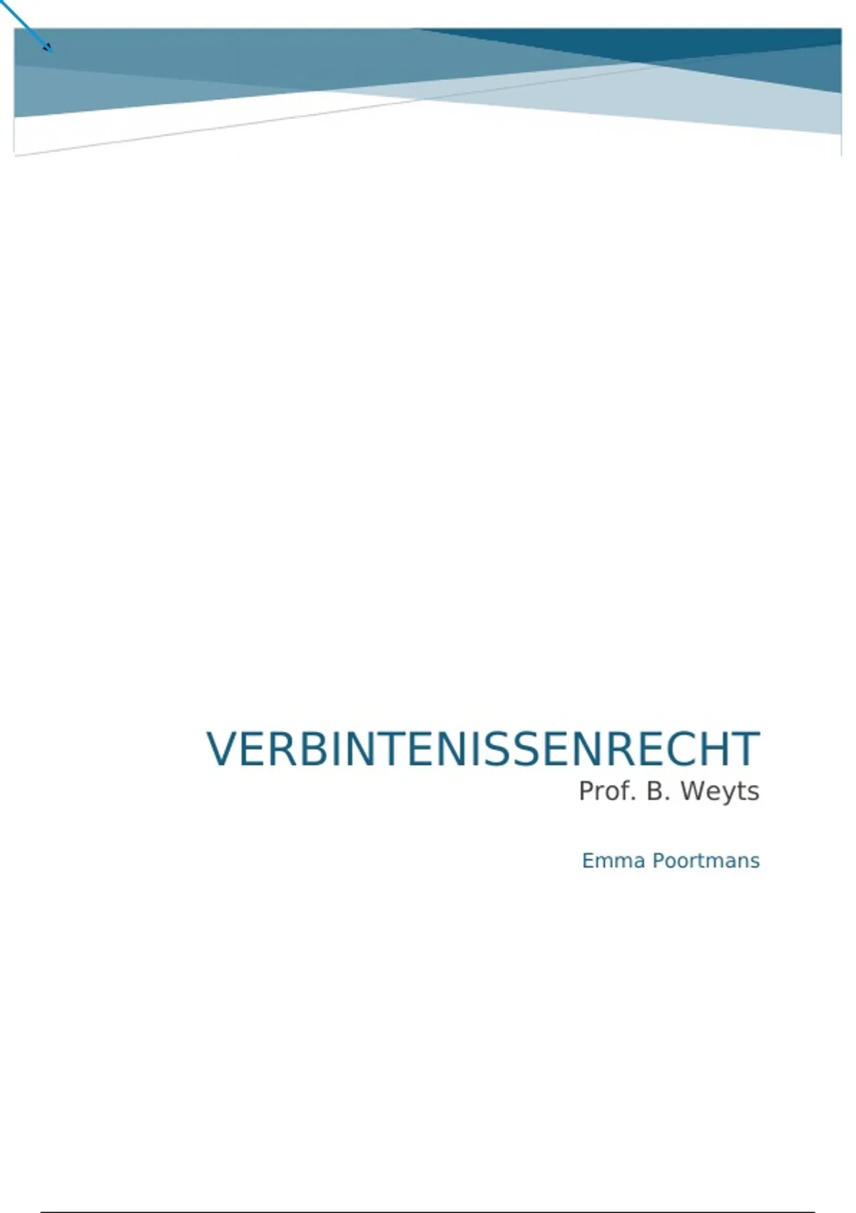Deze samenvatting van het verbintenissenrecht is opgebouwd op basis van de lessen van prof. Brit Weyts. De PowerPoints uit de les zijn verwerkt en aangevuld waar nodig. Voor de moeilijkere onderdelen is ook het handboek gebruikt, zodat de uitleg duidelijker en vollediger is. Daarnaast zijn er veel voorbeelden opgenomen die tijdens de lessen aan bod kwamen, om de leerstof beter te begrijpen en toe te passen.