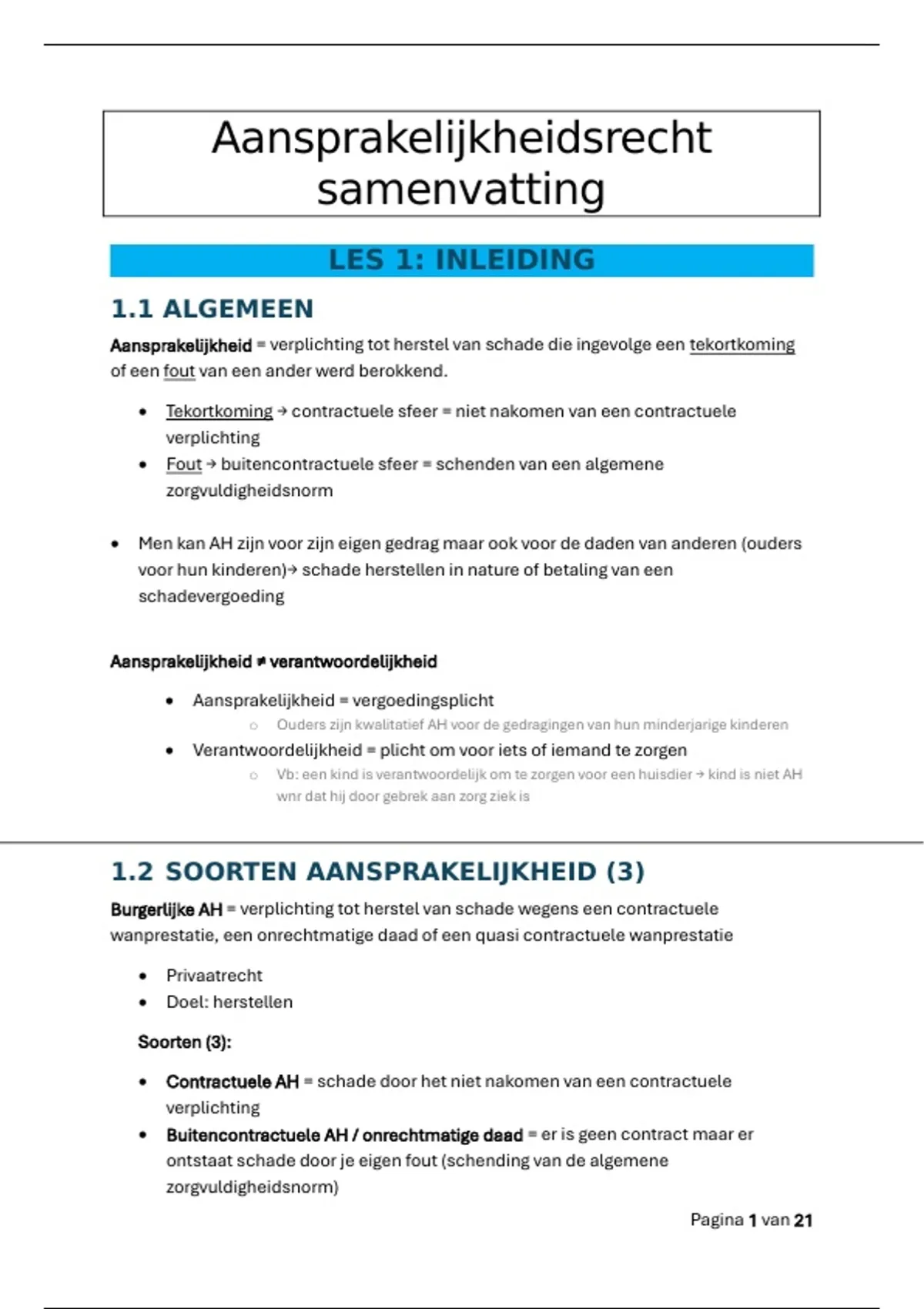 Aansprakelijkheids recht samenvatting