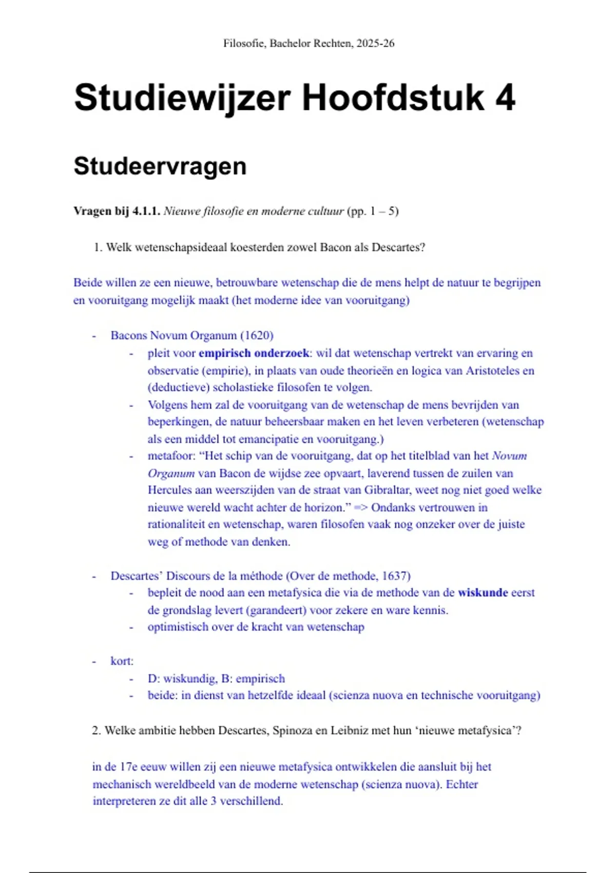 1. Welk wetenschapsideaal koesterden zowel Bacon als Descartes?