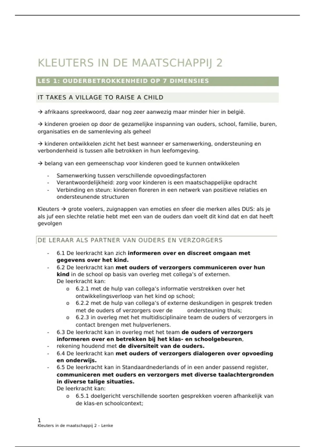 LES 1: OUDERBETROKKENHEID OP 7 DIMENSIES
