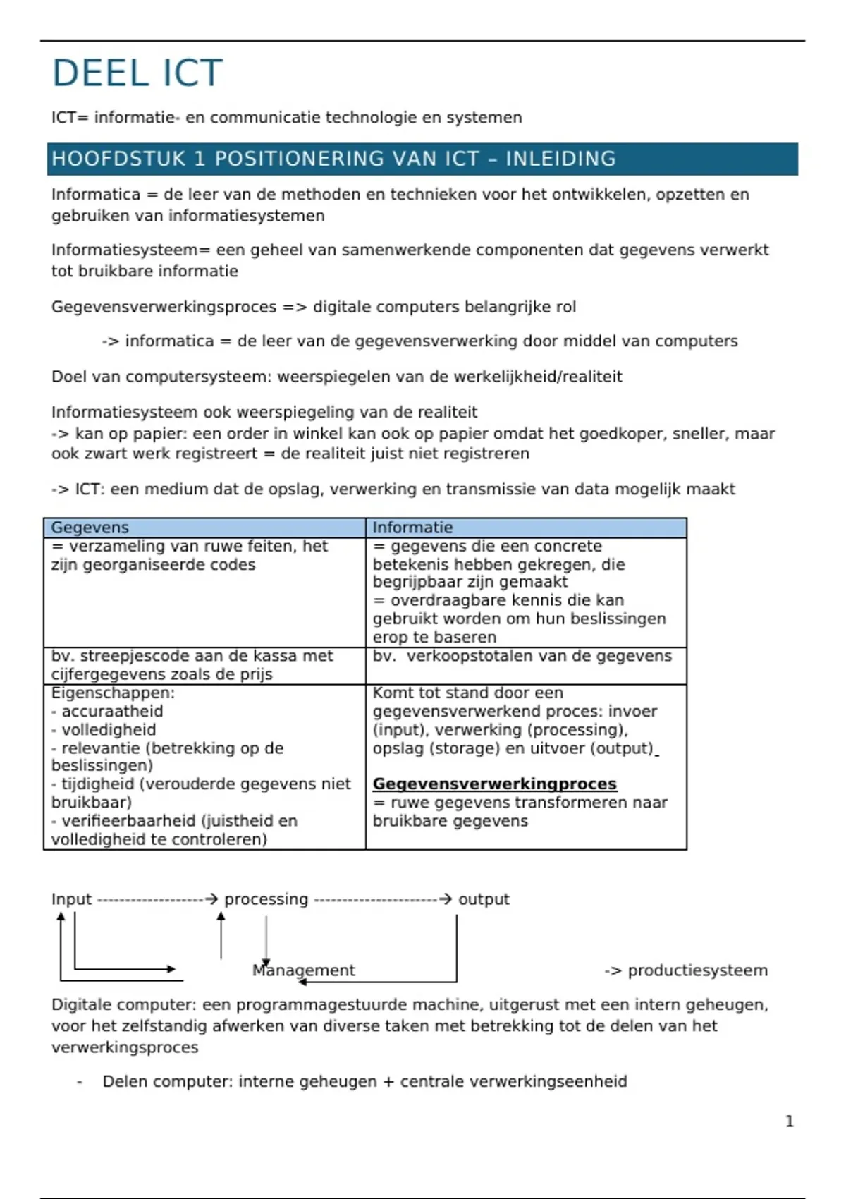 -> ICT: een medium dat de opslag, verwerking en transmissie van data mogelijk maakt
