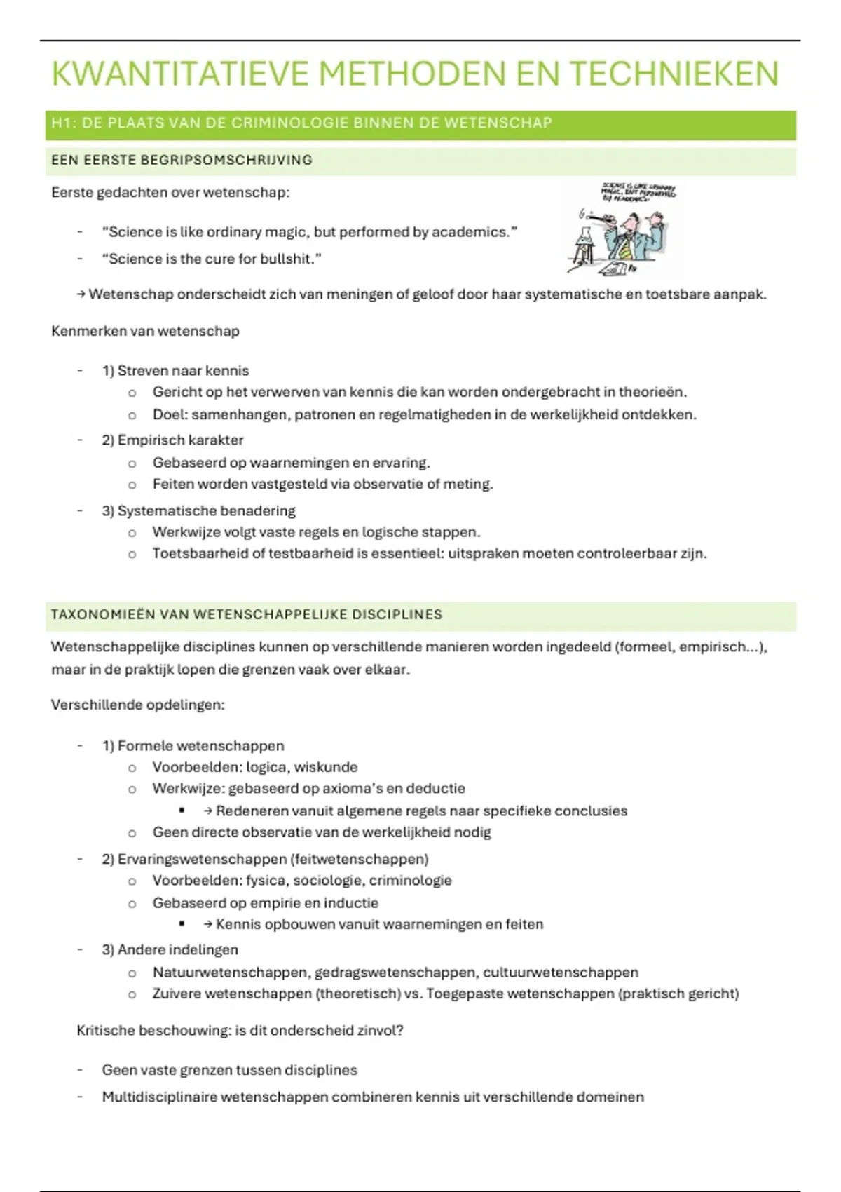 H1: DE PLAATS VAN DE CRIMINOLOGIE BINNEN DE WETENSCHAP