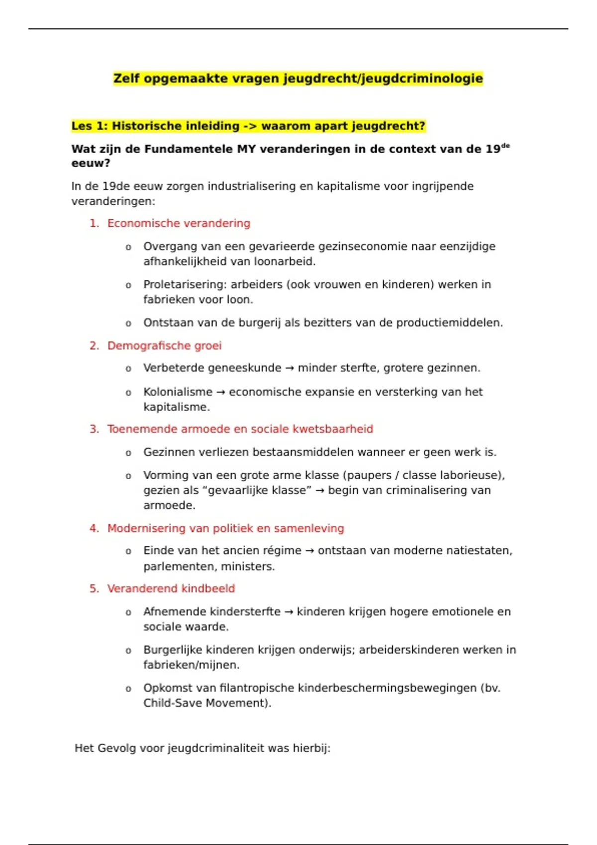 Zelf opgemaakte vragen jeugdrecht/jeugdcriminologie