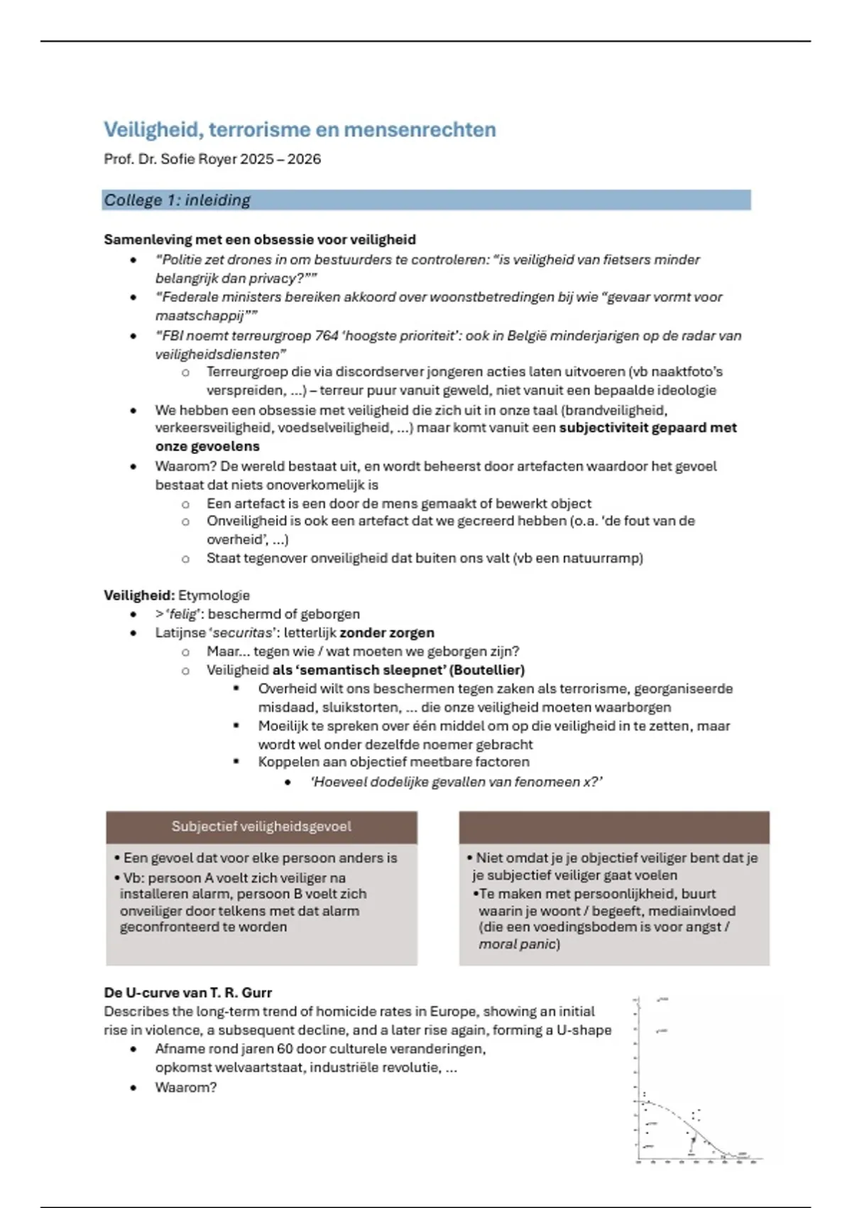 Samenvatting van het vak veiligheid, terrorisme en mensenrechten , gegeven door Sofie Royer in het academiejaar . Gebaseerd op de lessen en ppts, met gastcolleges included.