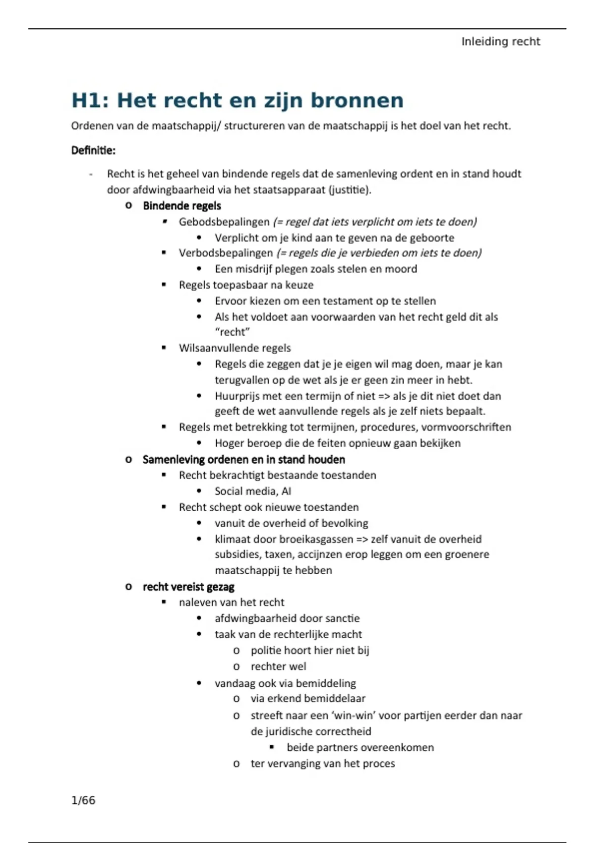 H1: Het recht en zijn bronnen
