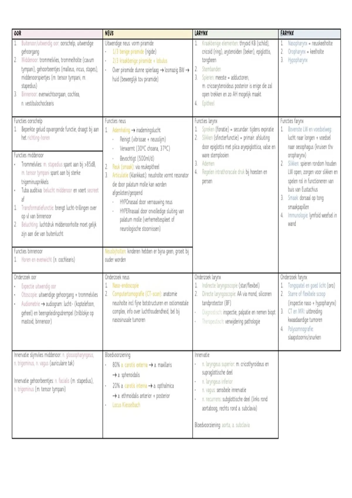 1. Buitenoor/uitwendig oor: oorschelp, uitwendige Uitwendige neus: vorm piramide 1. Kraakbenige elementen: thryoid KB (schild), 1. Nasopharynx = neuskeelholte