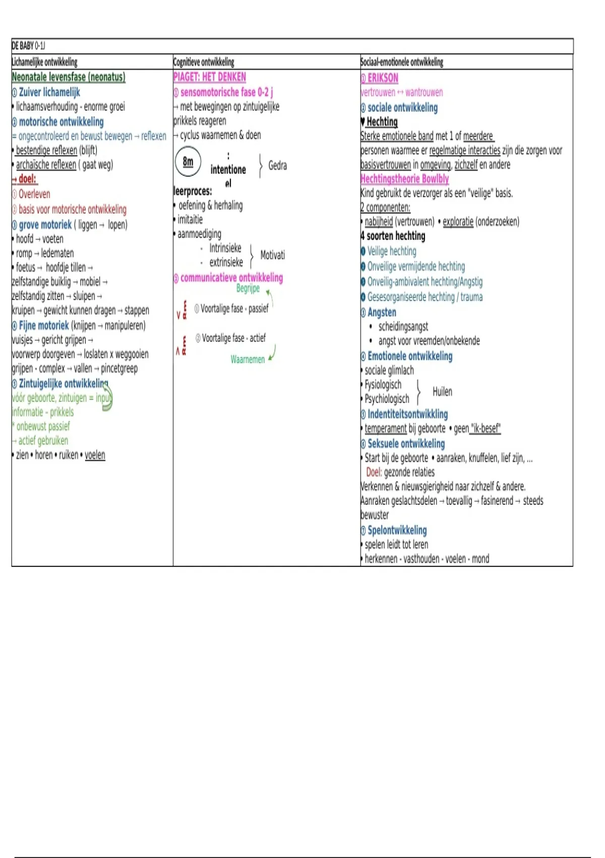 ② motorische ontwikkeling prikkels reageren © Hechting