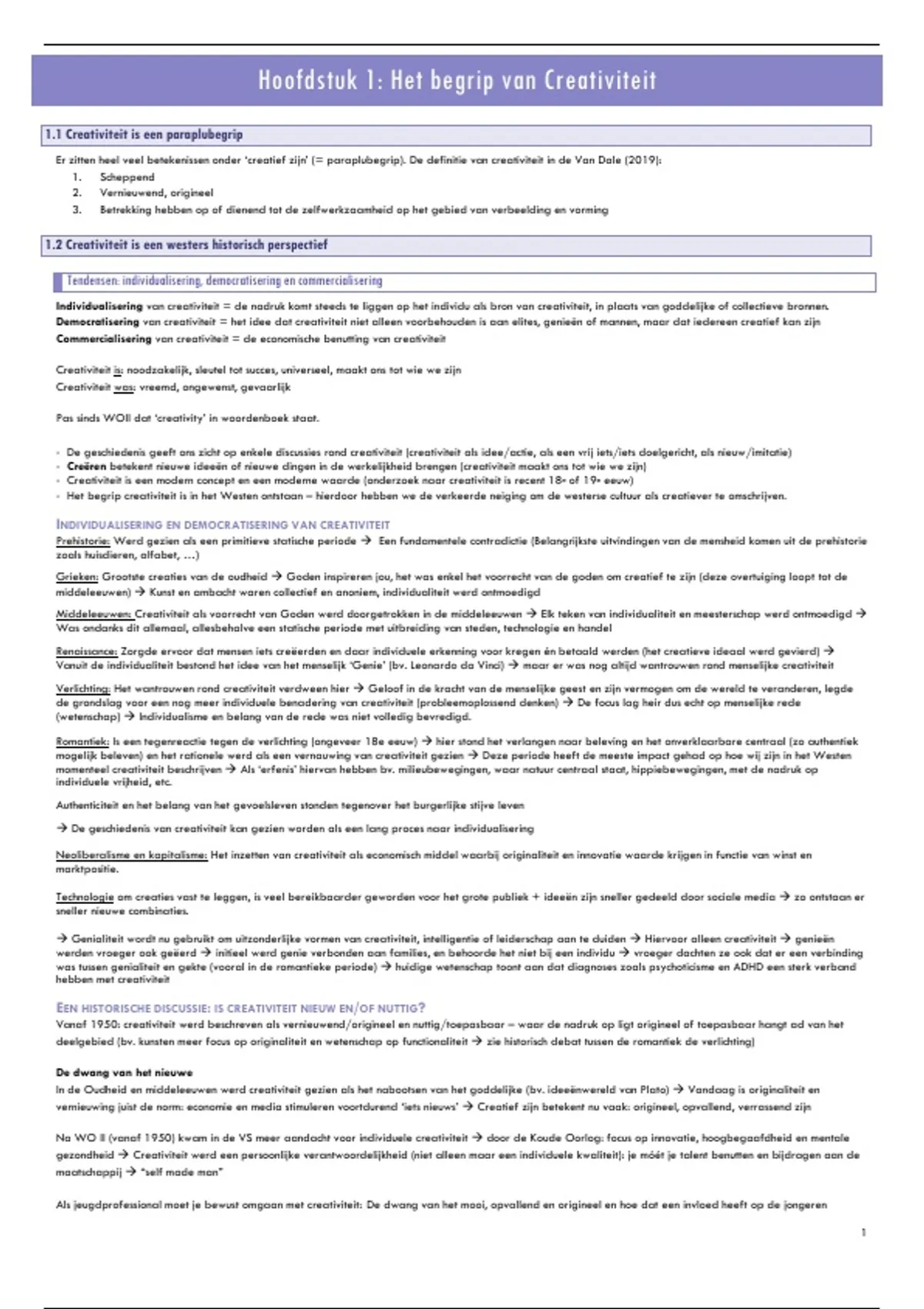 1.2 Creativiteit is een westers historisch perspectief