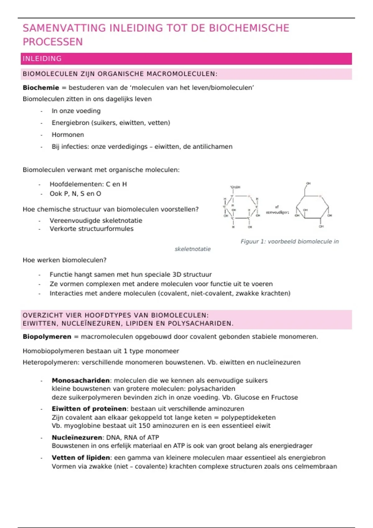 SAMENVATTING INLEIDING TOT DE BIOCHEMISCHE
