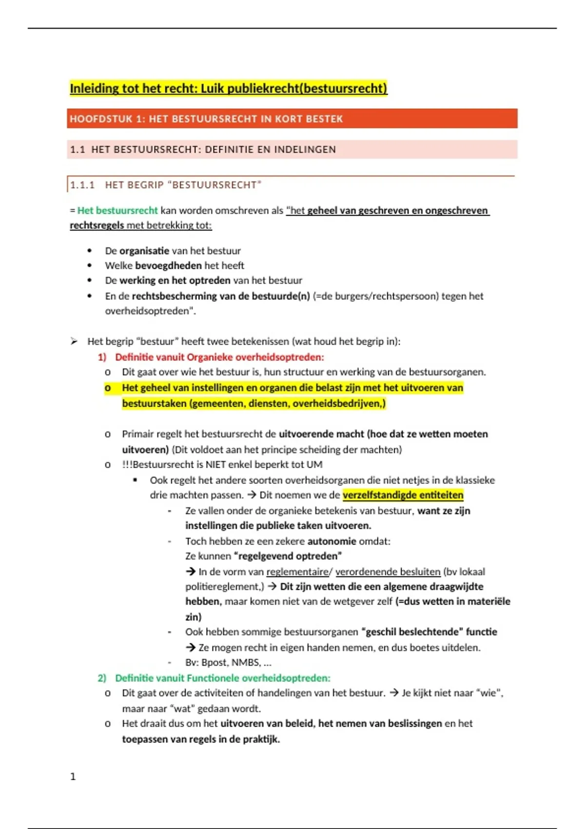 Samenvatting inleiding tot het recht -Luik publiekrecht (bestuursrecht)