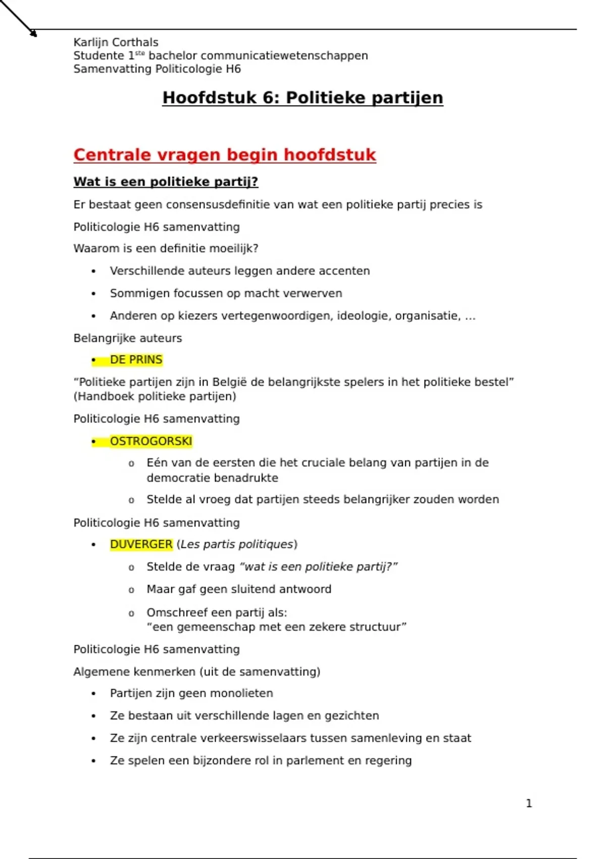 o Stelde de vraag “wat is een politieke partij?”