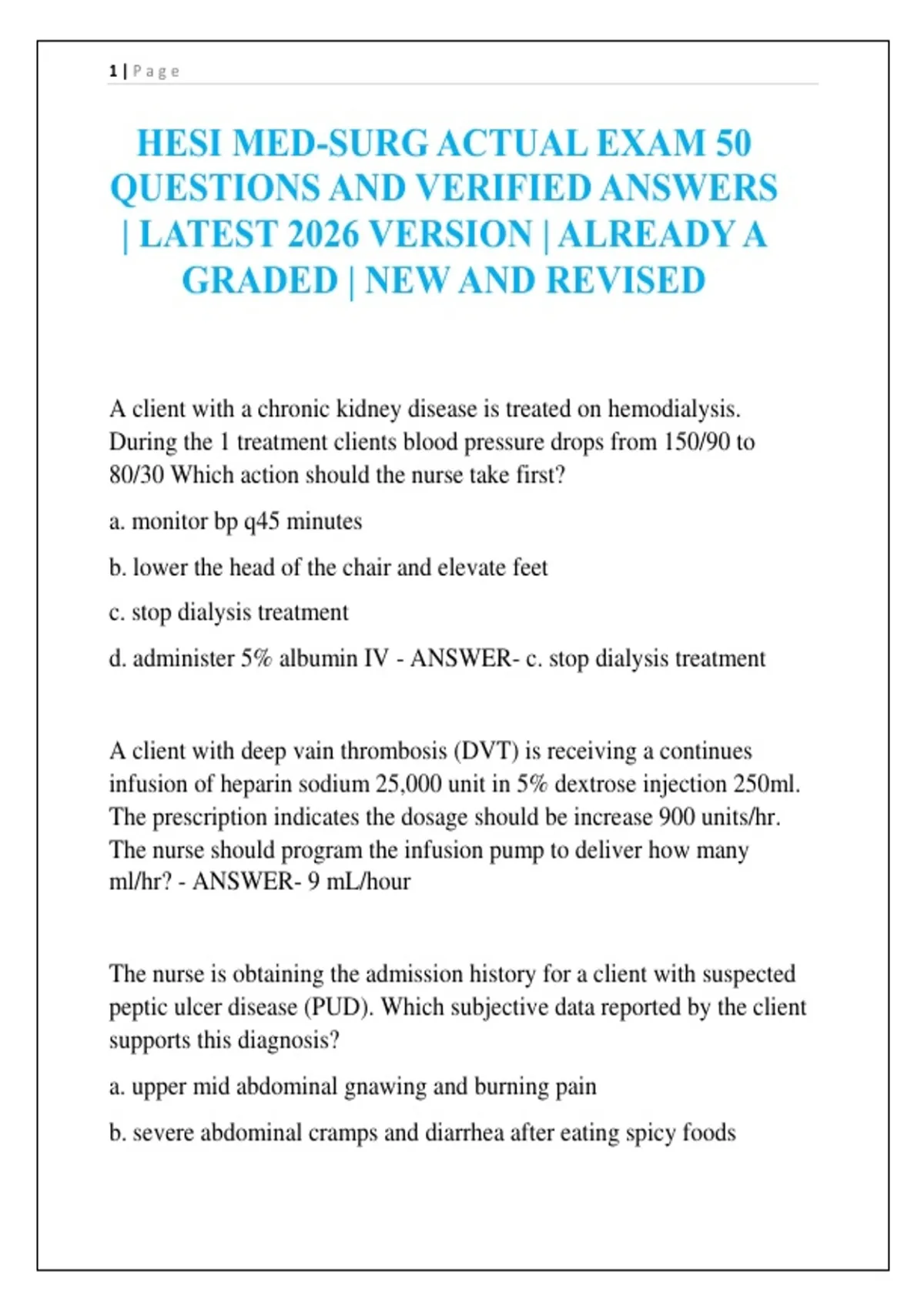 HESI MED-SURG ACTUAL EXAM 50 QUESTIONS AND VERIFIED ANSWERS | LATEST 2026 VERSION | ALREADY A GRADED | NEW AND REVISED