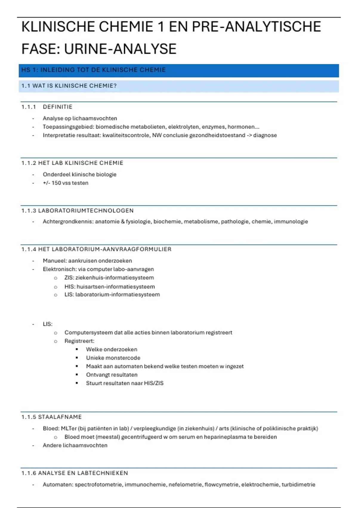 HS 1: INLEIDING TOT DE KLINISCHE CHEMIE
