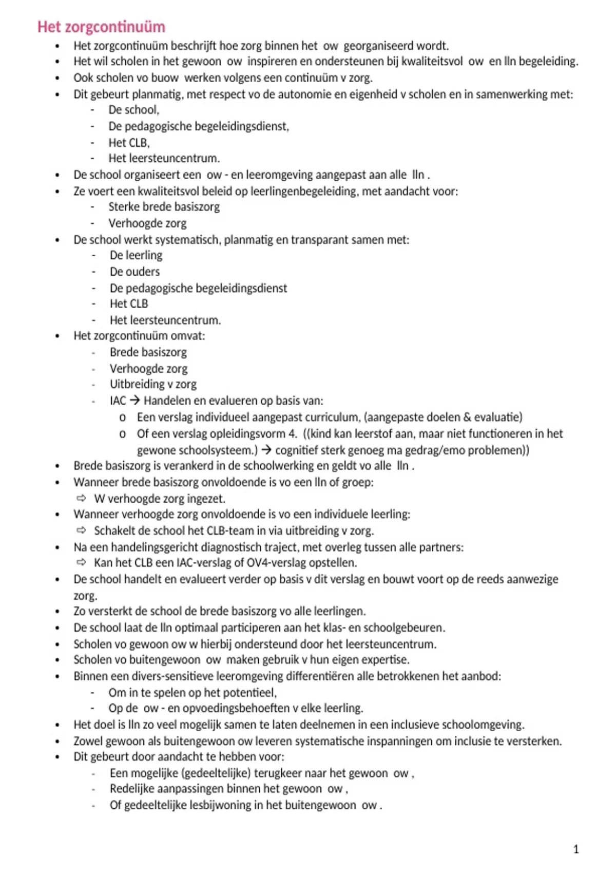 De hele cursus van zorg 3 wordt hierin samengevat. 62 pagina's en een inhoudstafel om alles snel terug te vinden. Alle onderdelen per ontwikkelingsstoornis en leerstoornis staan erin.