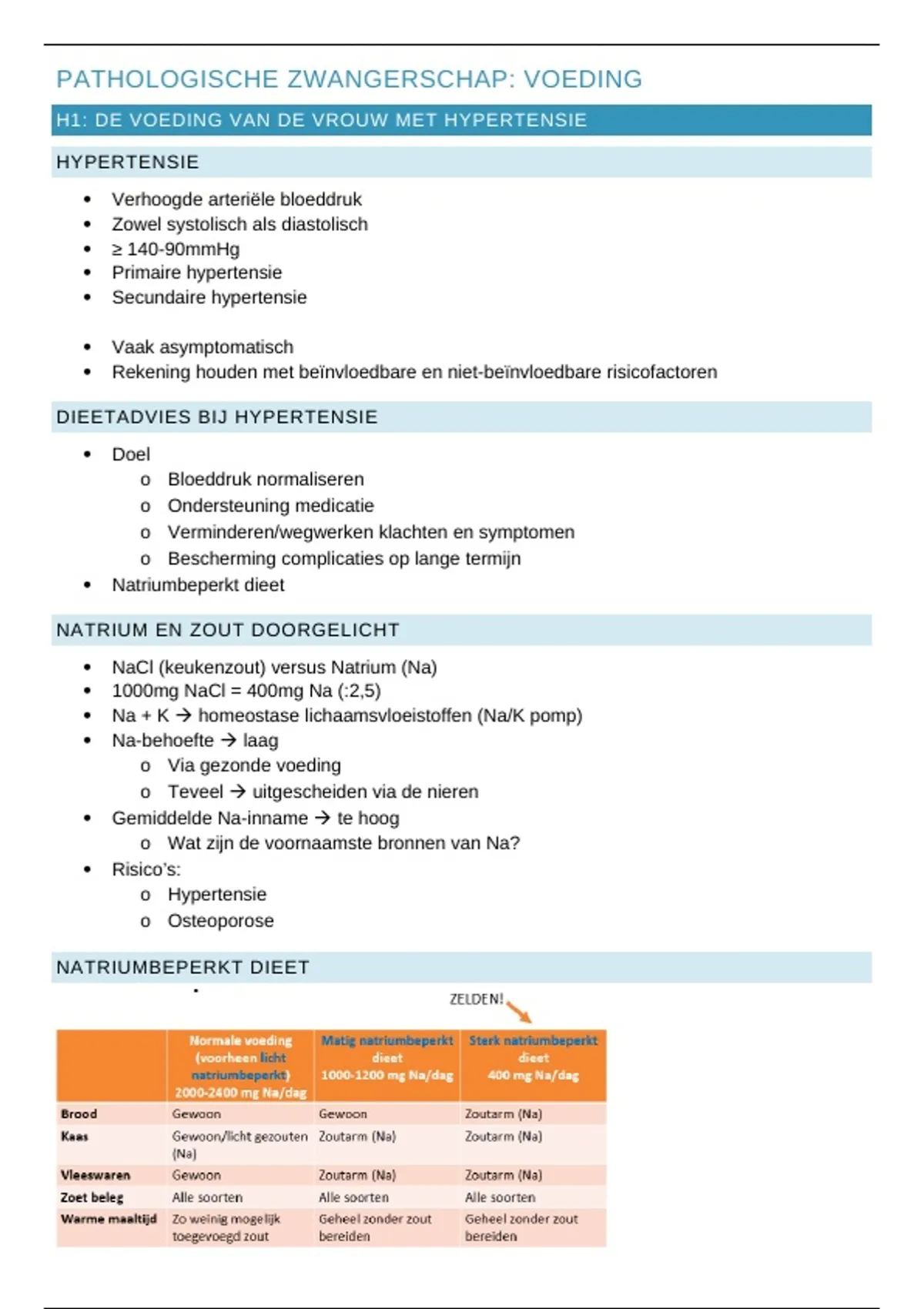 H1: DE VOEDING VAN DE VROUW MET HYPERTENSIE