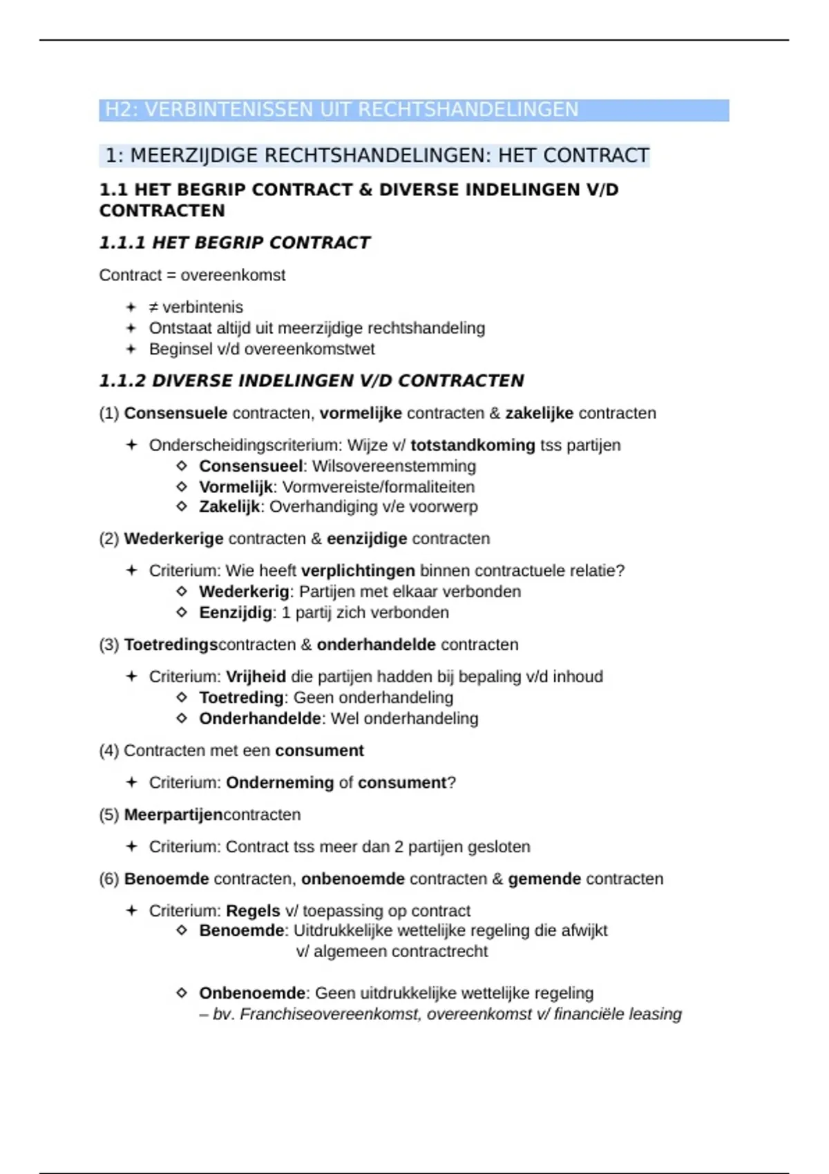 1: MEERZIJDIGE RECHTSHANDELINGEN: HET CONTRACT