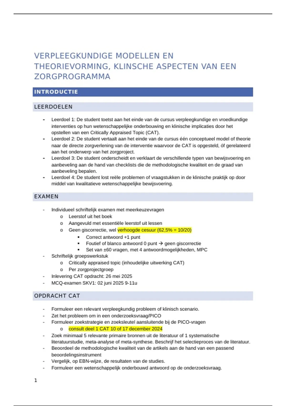 o Critically appraised topic (inhoudelijke uitwerking CAT)