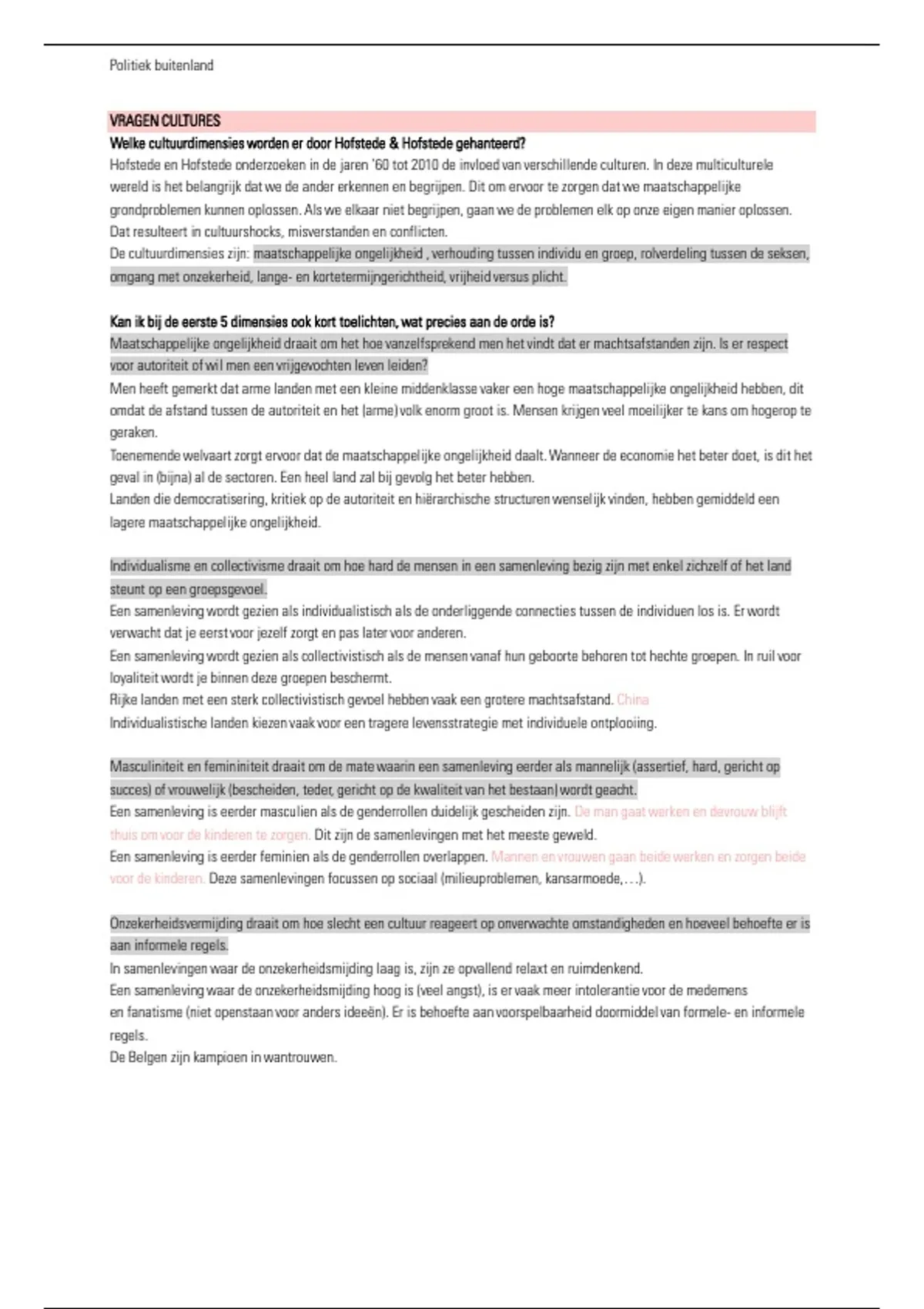 Samenvatting - Politiek/Internationaal (Thomas More) + examenvragen