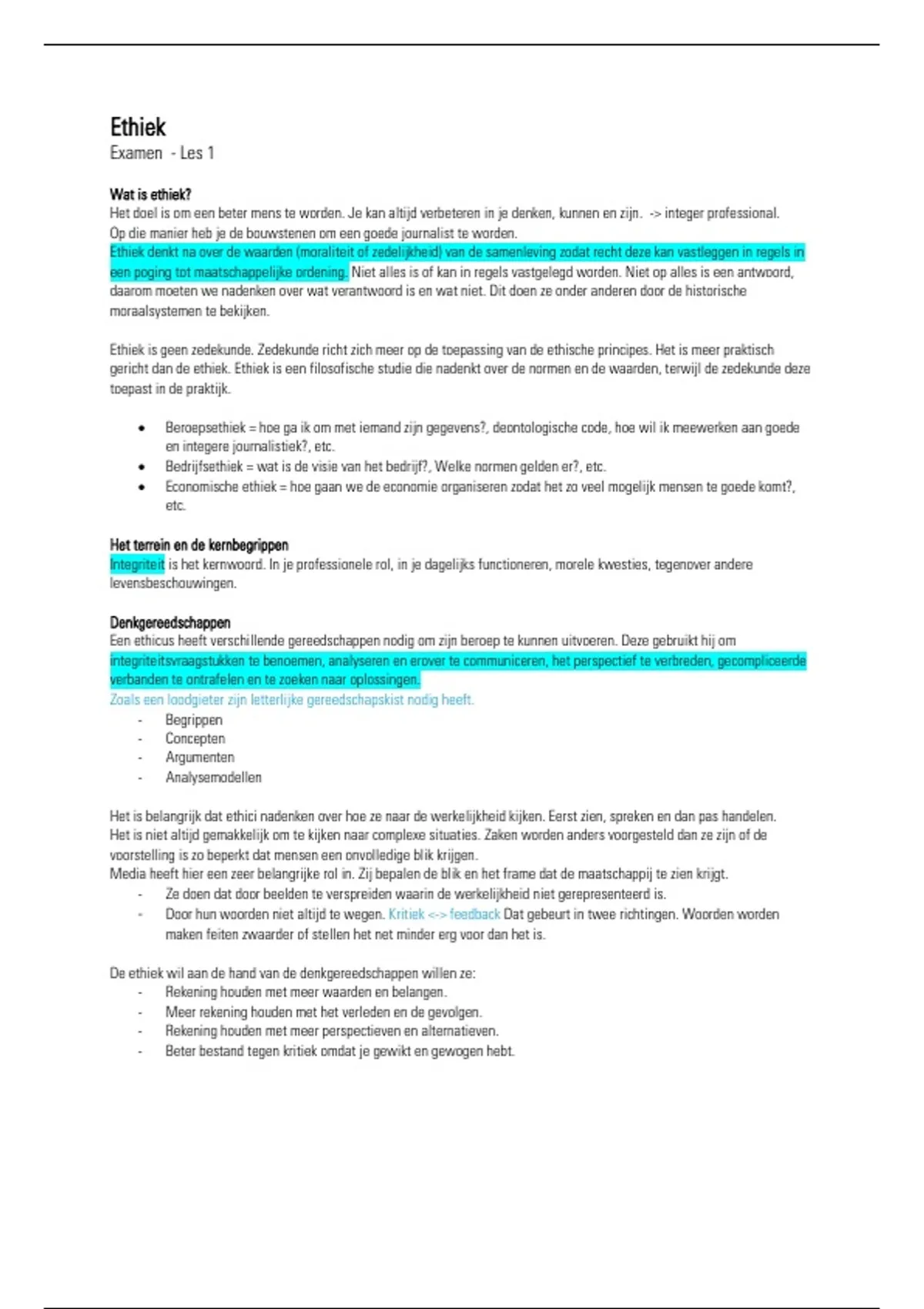 • Bedrijfsethiek = wat is de visie van het bedrijf?, Welke normen gelden er?, etc.