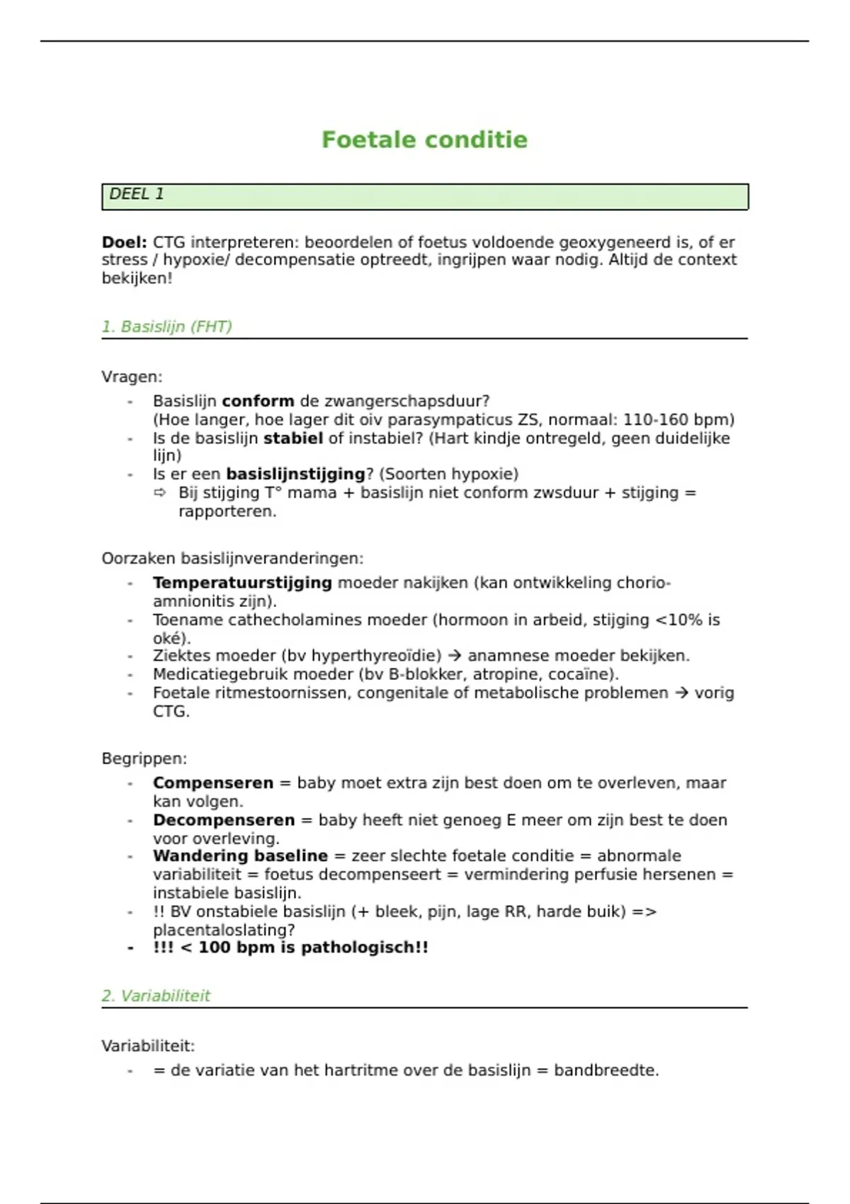 Doel: CTG interpreteren: beoordelen of foetus voldoende geoxygeneerd is, of er
