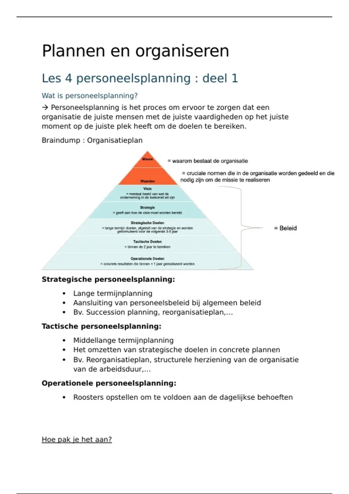 Samenvatting plannen en organiseren