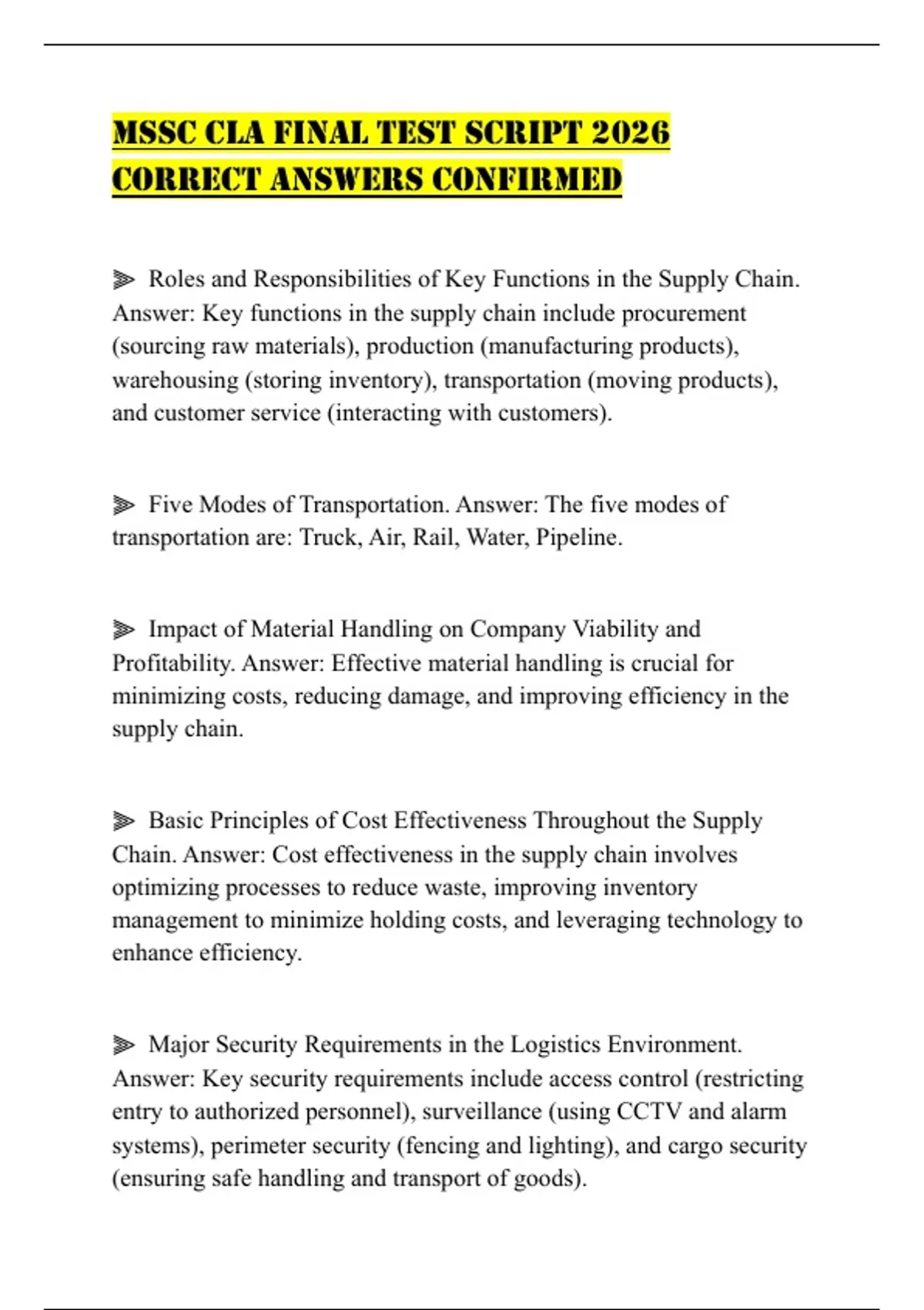 MSSC CLA FINAL TEST SCRIPT 2026 CORRECT ANSWERS CONFIRMED